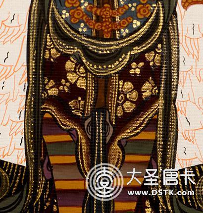 尼泊爾畫派特有畫風,紋飾栩栩如生,花卉紋飾靈巧飄逸,舒展有度,畫面統一和諧,渾然一體,增加了畫面的層次和高度。