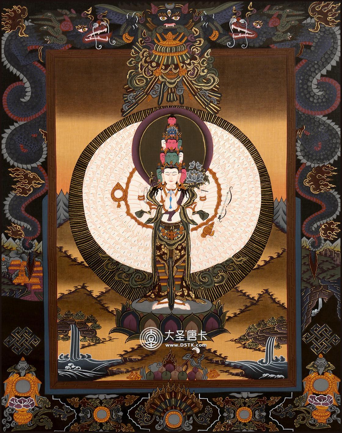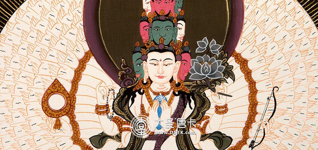 十一面千手觀音,共十一張面孔,分五層排列。一面,化惡有情;二面慈面,化善有情;三面寂靜面,化導出世凈業。這三面教化三界便有九面。第十面為暴笑面,表示教化事業需要有極大威嚴和極大意志方能無懈而有成就。最上一面為佛地,功德圓滿。保佑您度過各種難關、消除各種病痛,達到一生幸福、平安吉祥。鼠年生人,若能虔誠供奉千手觀音菩薩之本命佛法像,必使事事順心,心想事成。