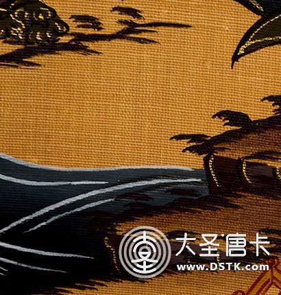 采用涂金、磨金、勾金線、刻金、染金的絕技,將金色分成多種冷暖變化,在黑地上用金線勾畫十幾種不同的層次效果,對比強烈,畫面富麗堂皇。