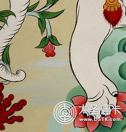 主尊法相威嚴,花卉紋飾靈巧飄逸,舒展有度,畫面統一和諧,渾然一體,增加了畫面的層次和高度。