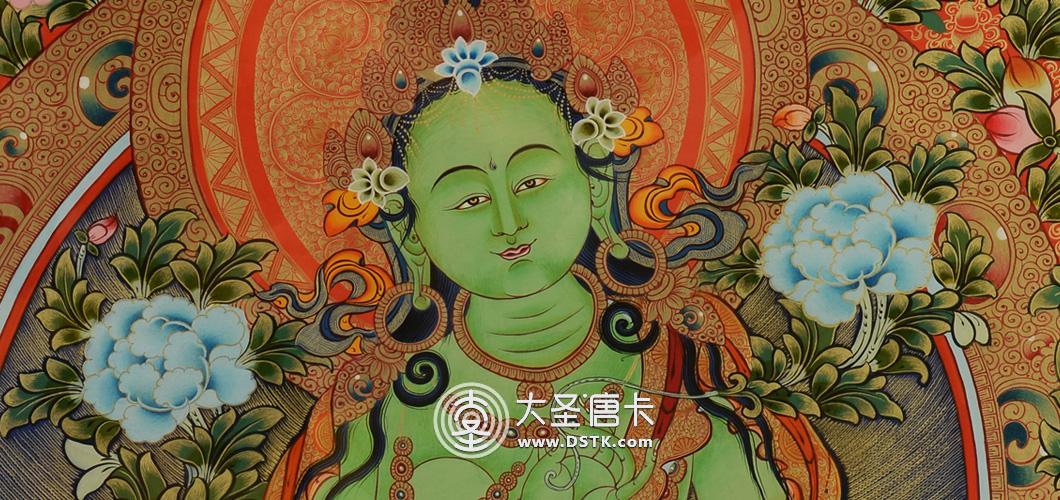綠度母為觀世音菩薩的化身。度母,梵名Tara,全稱圣救度佛母,綠度母為所有度母之主尊,總攝其余二十尊化身之所有功德。她能救八種苦難,如獅難、象難、蛇難、水難、牢獄難、賊難、非人難,又稱為“救八難度母”。