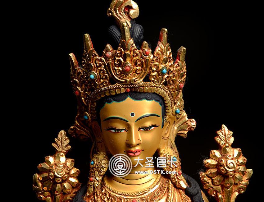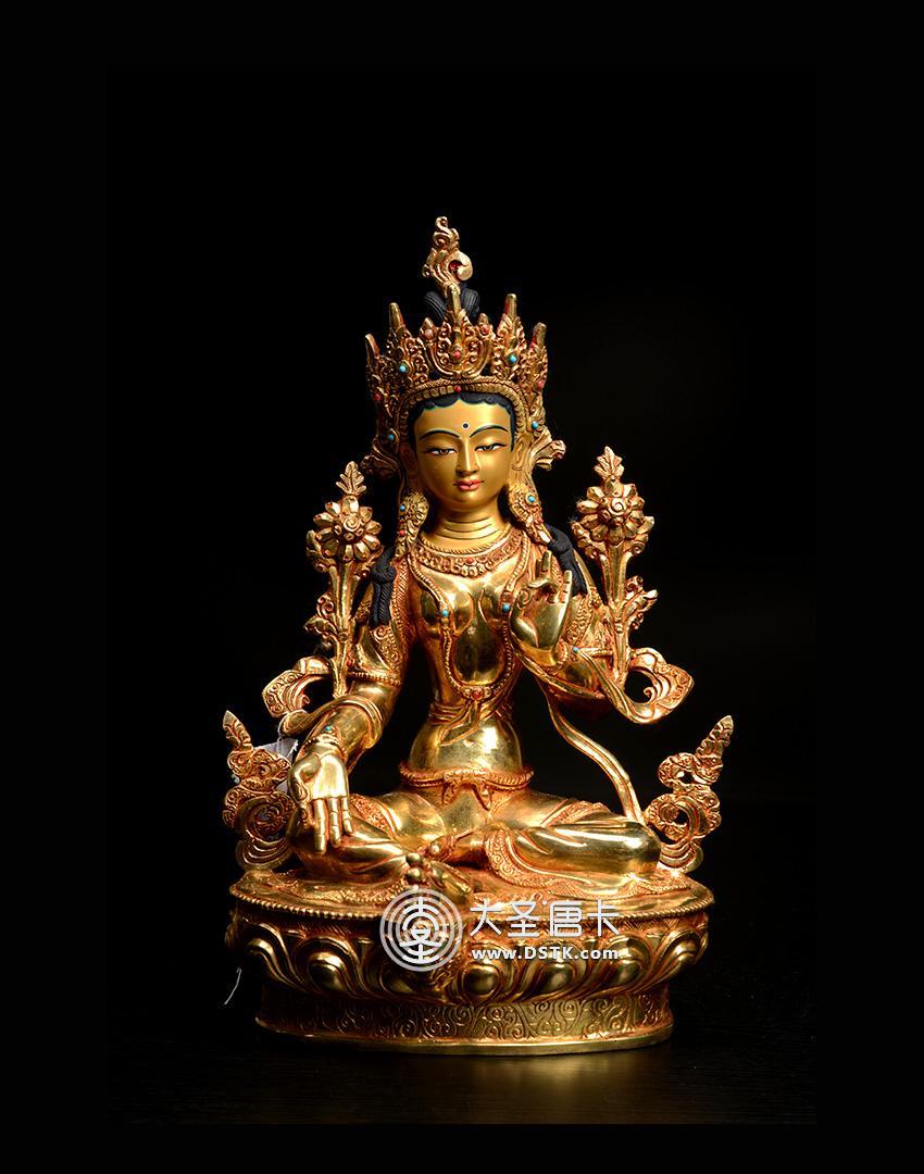 產地:尼泊爾佛像 工藝:鎏金 創作年份:2017 題材:佛母 繪制時間:0日 尺寸:22*38*22cm 重量:0 g 材質:紫銅 使用場地: