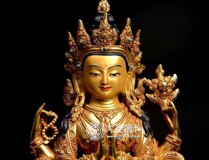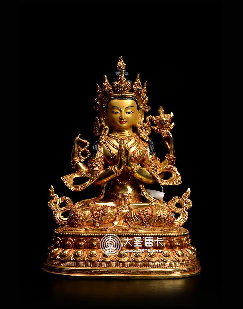 四臂觀音鎏金一尺