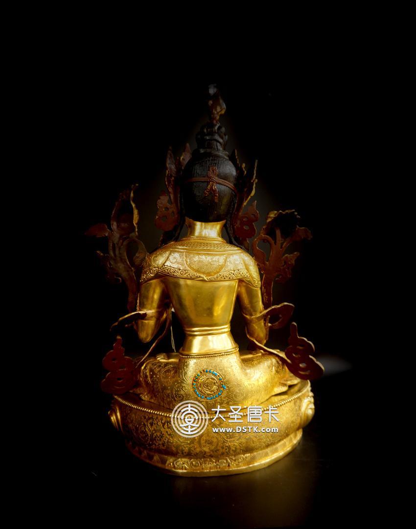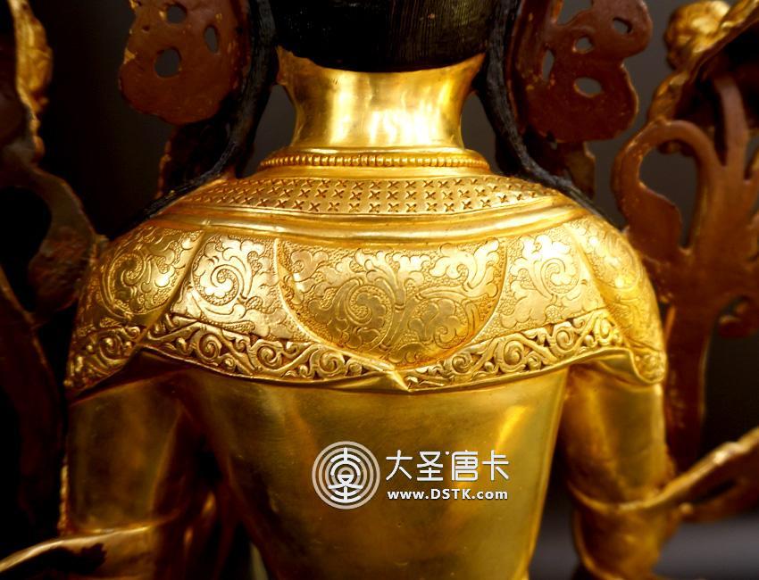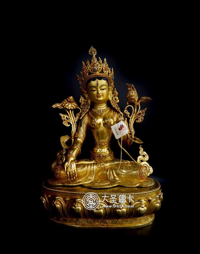 產地:尼泊爾佛像 工藝:鎏金 創作年份:2017 題材:佛母 繪制時間:0日 尺寸:32*43*32cm 重量:0 g 材質:紫銅 使用場地: