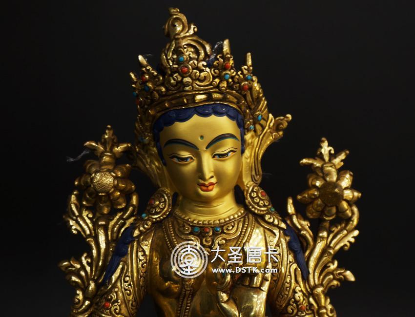 產地:尼泊爾佛像 工藝:鎏金 創作年份:2017 題材:佛母 繪制時間:0日 尺寸:12*23*12cm 重量:0 g 材質:紫銅 使用場地: