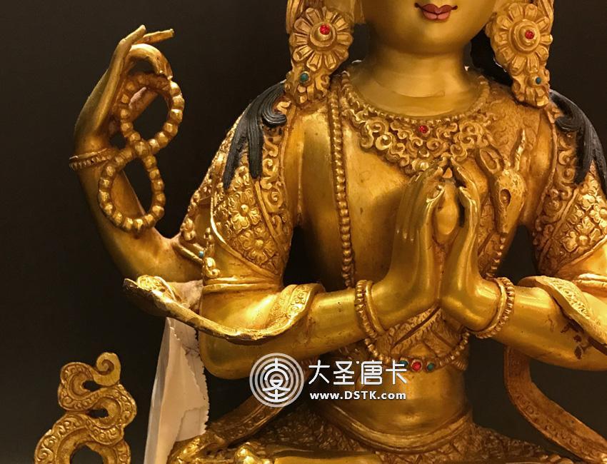 產地:尼泊爾佛像 工藝:鎏金 創作年份:2017 題材:菩薩 繪制時間:0日 尺寸:22*35*22cm 重量:0 g 材質:紫銅 使用場地: