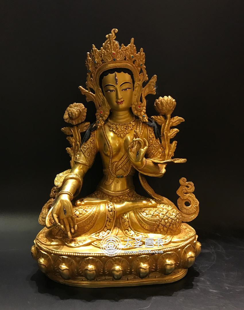 產地:尼泊爾佛像 工藝:鎏金 創作年份:2017 題材:佛母 繪制時間:0日 尺寸:23*35*23cm 重量:0 g 材質:紫銅 使用場地: