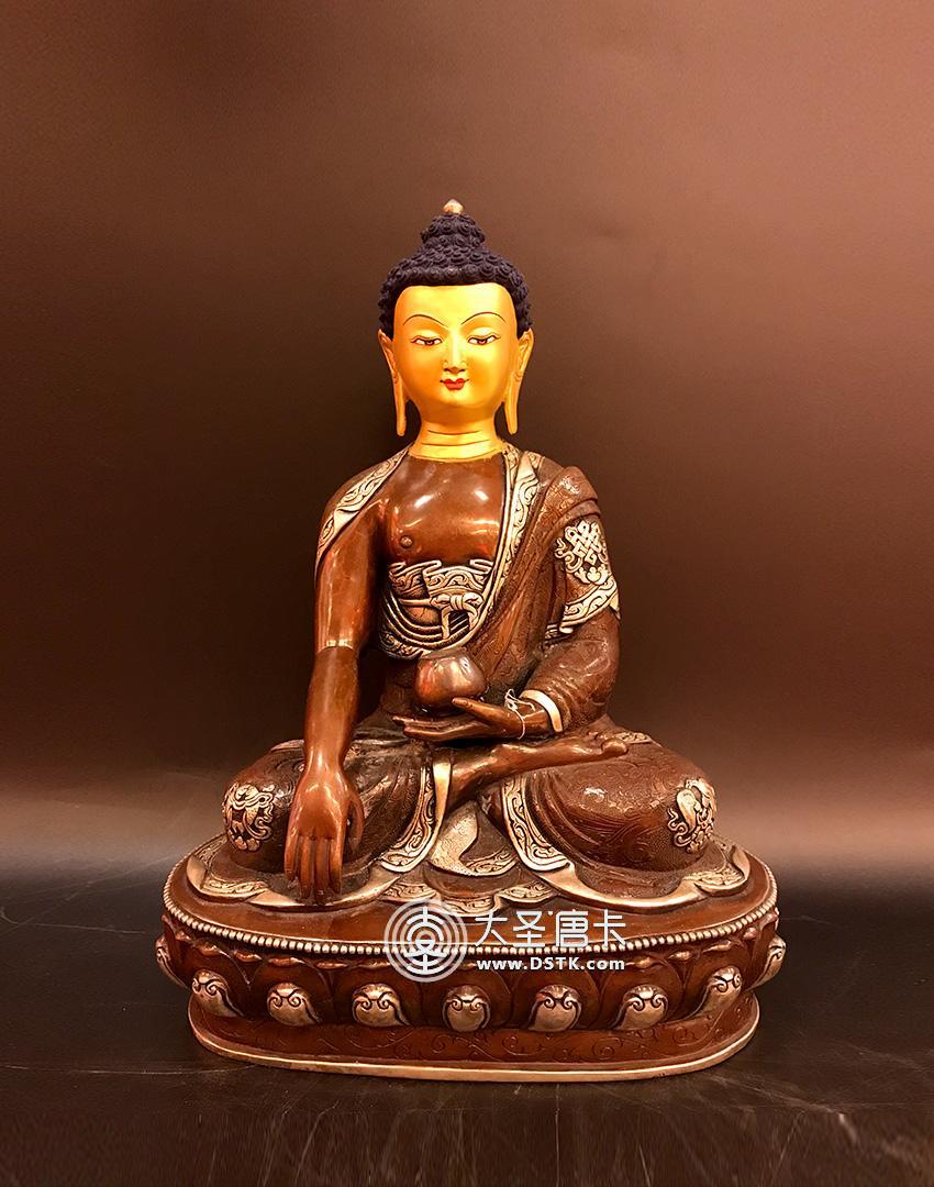 釋迦牟尼紫銅鍍銀一尺
