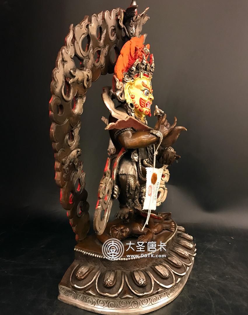 產地:尼泊爾佛像 工藝:紫銅 創作年份:2017 題材:護法 繪制時間:0日 尺寸:12*33*22cm 重量:0 g 材質:紫銅 使用場地: