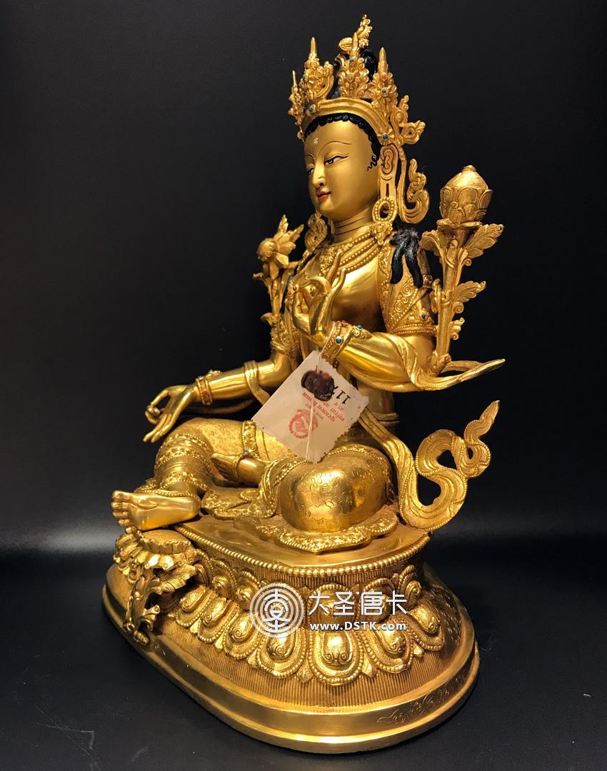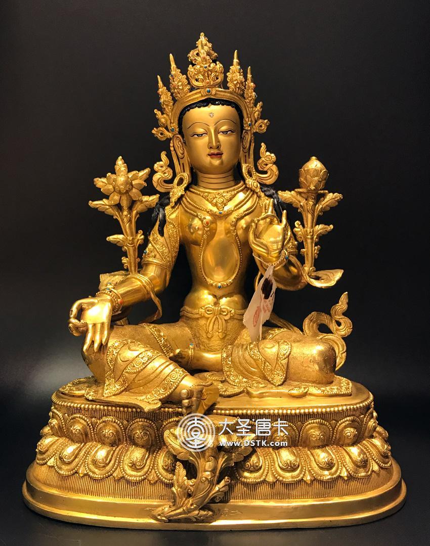 產地:尼泊爾佛像 工藝:鎏金 創作年份:2017 題材:佛母 繪制時間:0日 尺寸:12*33*22cm 重量:0 g 材質:紫銅 使用場地: