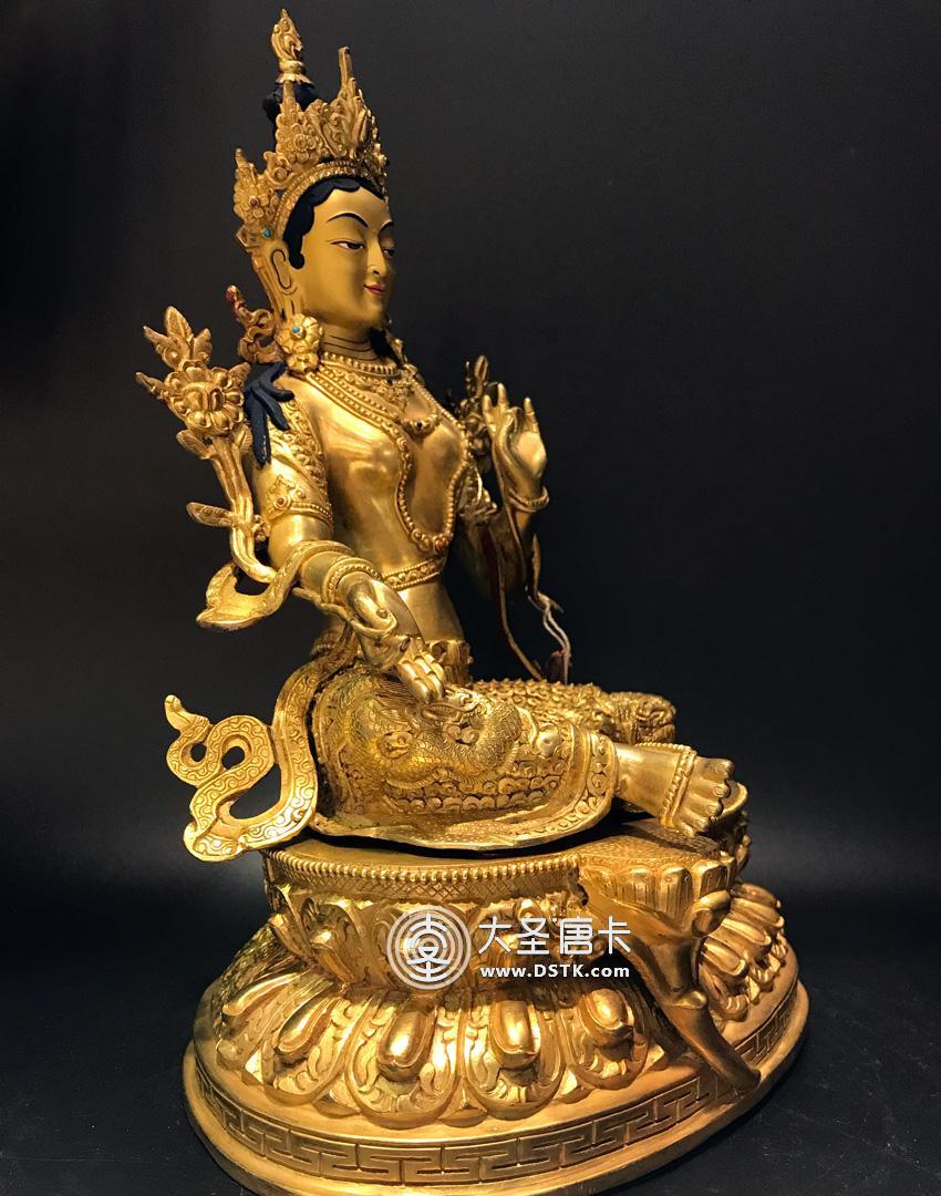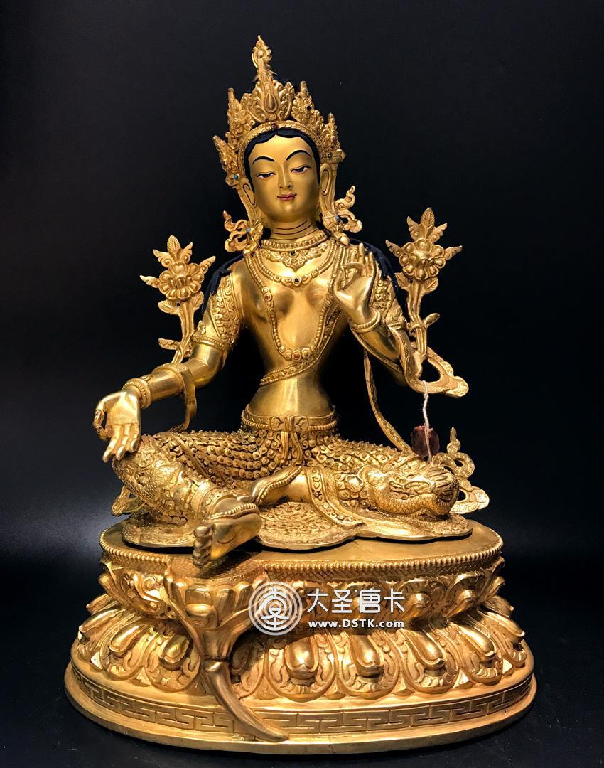 產地:尼泊爾佛像 工藝:鎏金 創作年份:2017 題材:佛母 繪制時間:0日 尺寸:12*33*23cm 重量:0 g 材質:紫銅 使用場地: