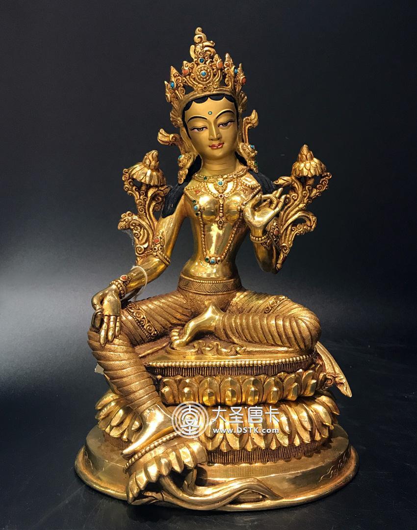 產地:尼泊爾佛像 工藝:鎏金 創作年份:2017 題材:佛母 繪制時間:0日 尺寸:15*23*12cm 重量:0 g 材質:紫銅 使用場地: