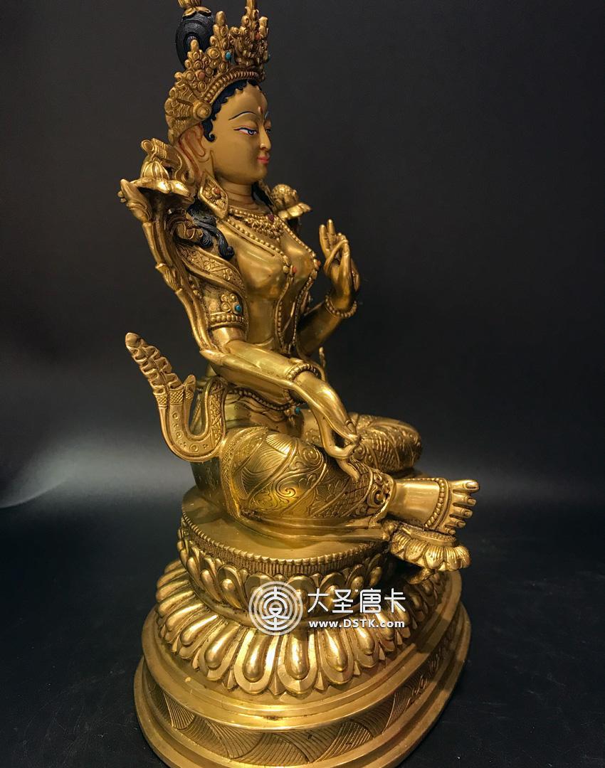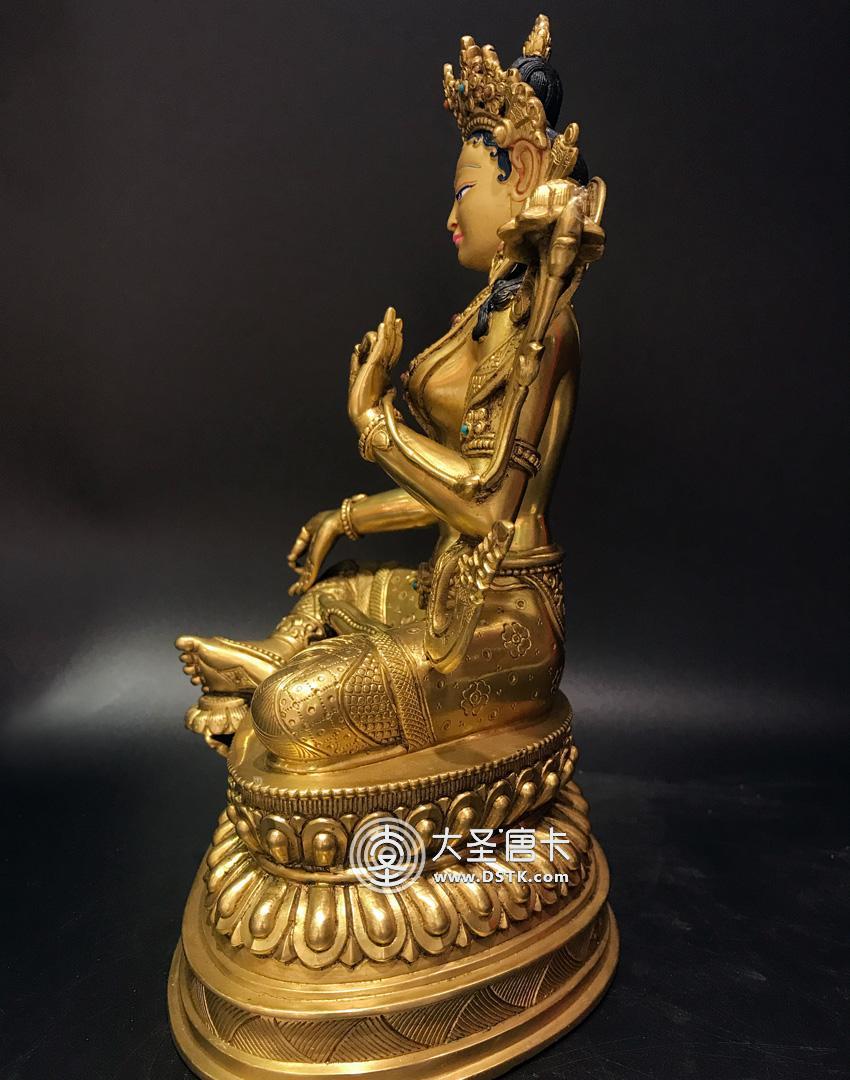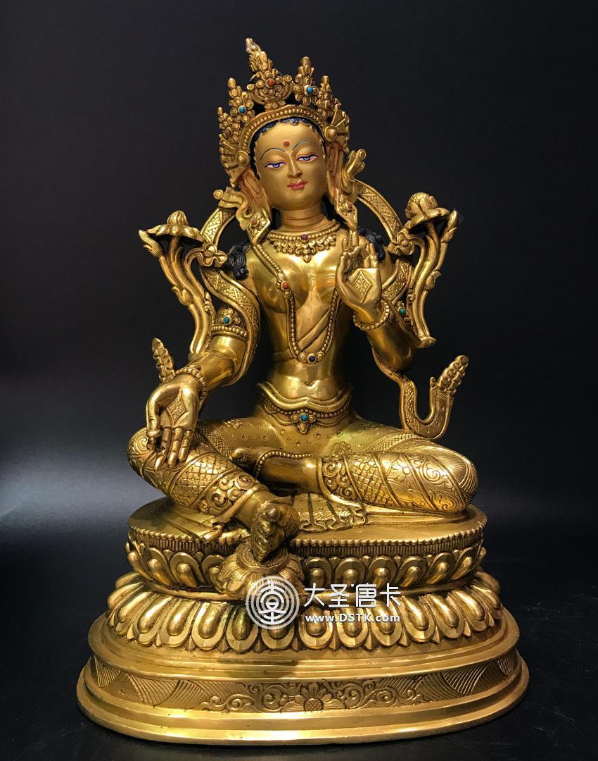 產地:尼泊爾佛像 工藝:鎏金 創作年份:2017 題材:佛母 繪制時間:0日 尺寸:12*23*12cm 重量:0 g 材質:紫銅 使用場地: