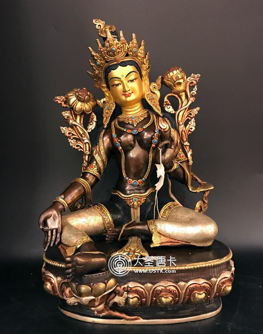大圣唐卡商城 >> 作品詳情 >> 綠度母紫銅一尺二