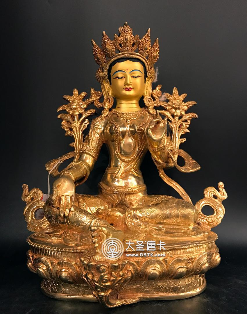 產地:尼泊爾佛像 工藝:鎏金 創作年份:2017 題材:佛母 繪制時間:0日 尺寸:18*33*25cm 重量:0 g 材質:紫銅 使用場地: