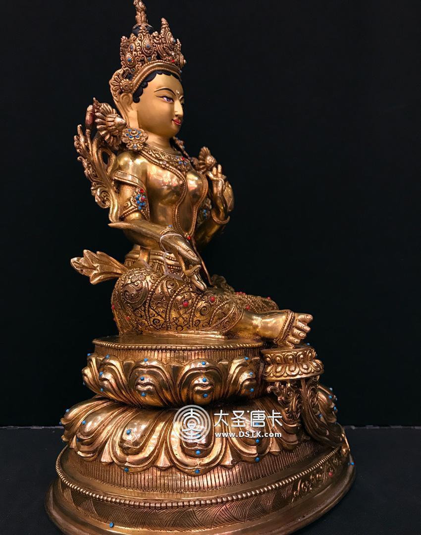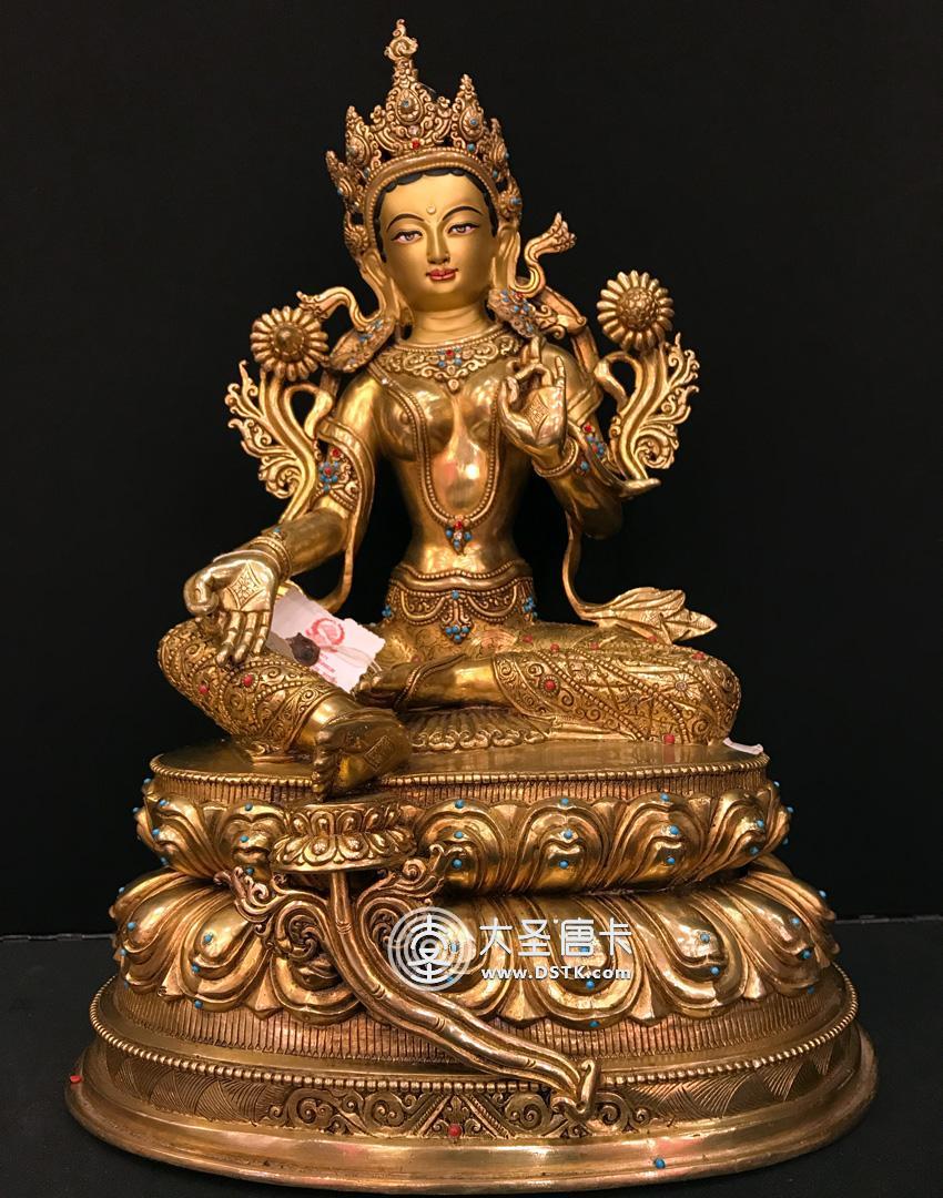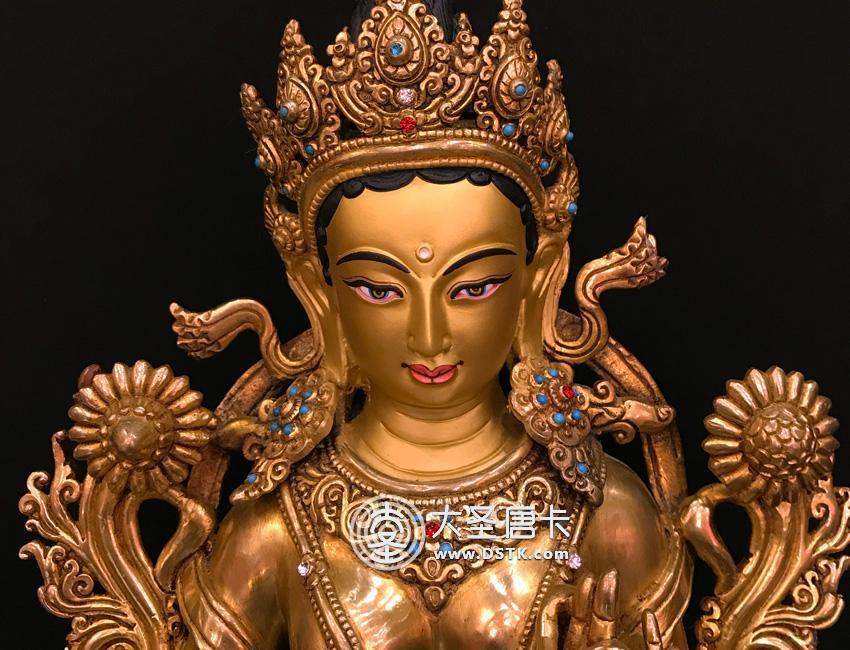 產地:尼泊爾佛像 工藝:鎏金 創作年份:2017 題材:佛母 繪制時間:0日 尺寸:40*25*25cm 重量:0 g 材質:紫銅 使用場地: