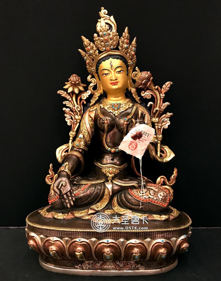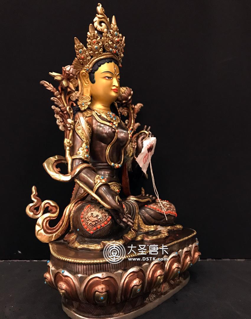 產地:尼泊爾佛像 工藝:鎏金 創作年份:2017 題材:佛母 繪制時間:0日 尺寸:38*25*25cm 重量:0 g 材質:紫銅 使用場地: