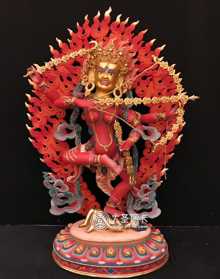 產地:尼泊爾佛像 工藝:鎏金 創作年份:2017 題材:佛母 繪制時間:0日 尺寸:50*26*26cm 重量:0 g 材質:紫銅 使用場地:
