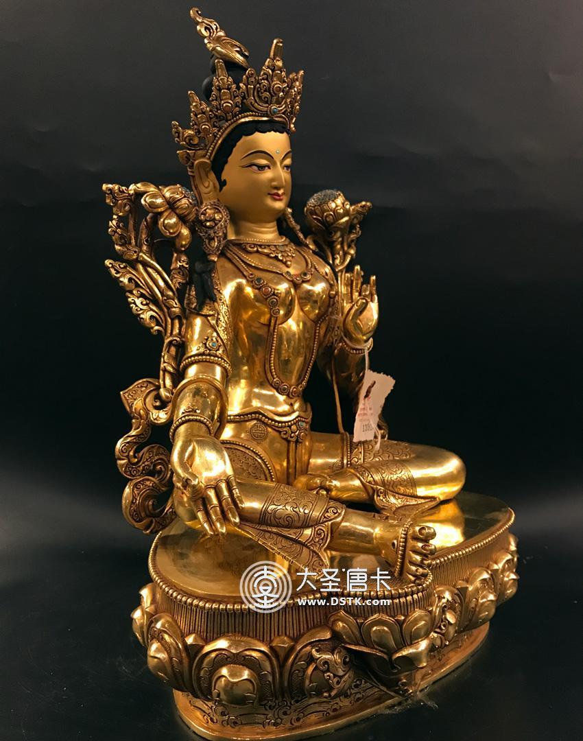 產地:尼泊爾佛像 工藝:鎏金 創作年份:2017 題材:佛母 繪制時間:0日 尺寸:39*25*26cm 重量:0 g 材質:紫銅 使用場地: