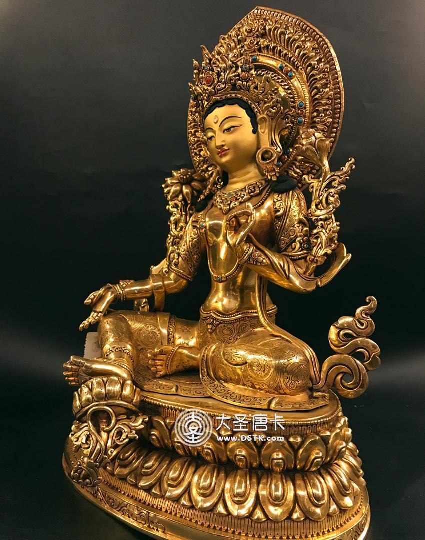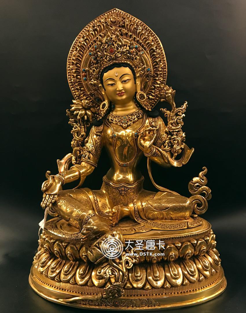 產地:尼泊爾佛像 工藝:鎏金 創作年份:2017 題材:佛母 繪制時間:0日 尺寸:46*26*28cm 重量:0 g 材質:紫銅 使用場地: