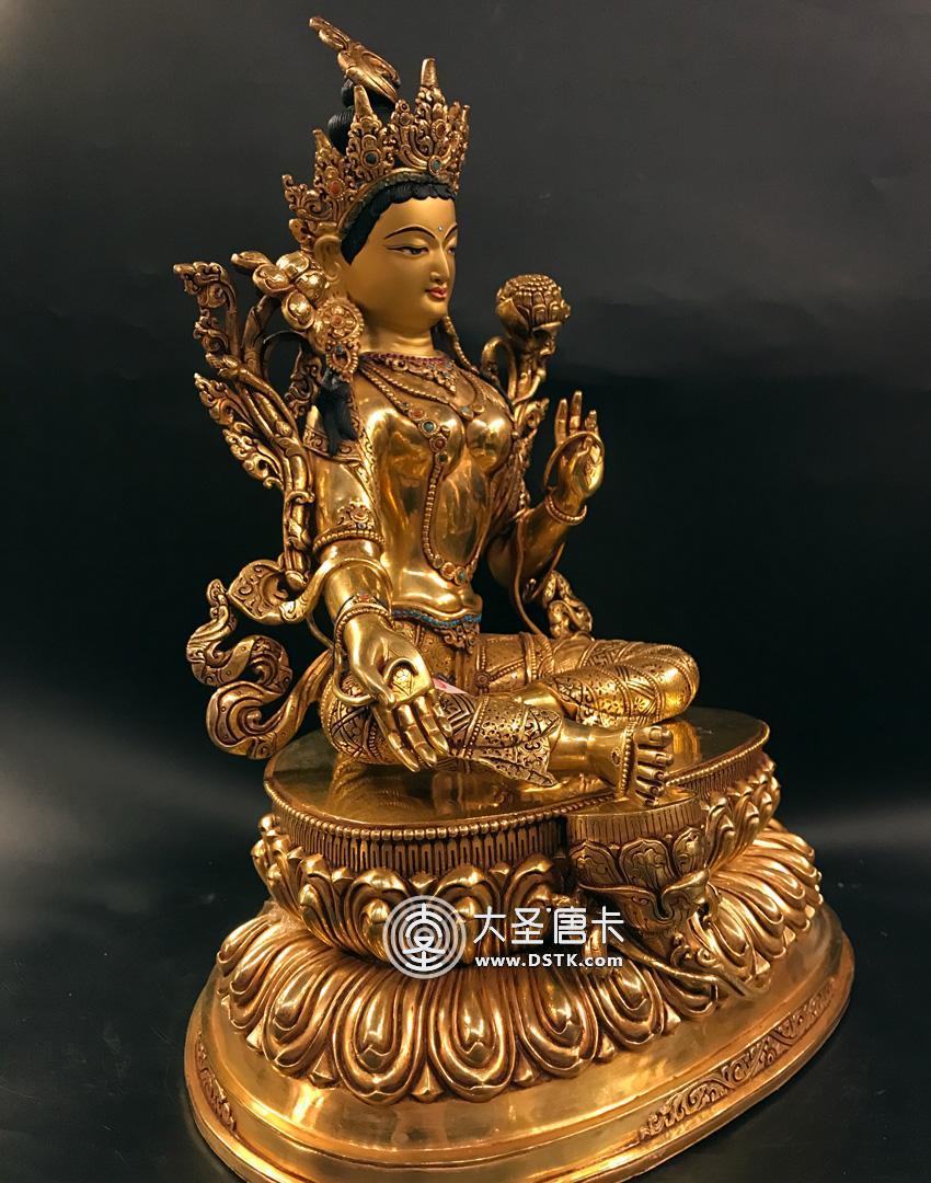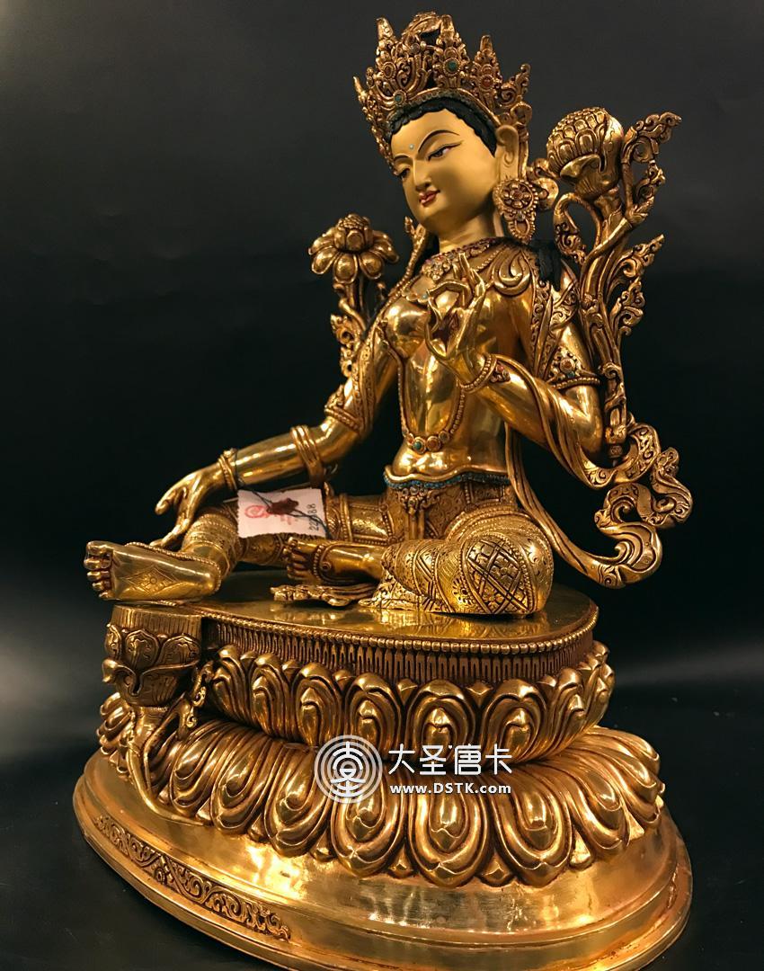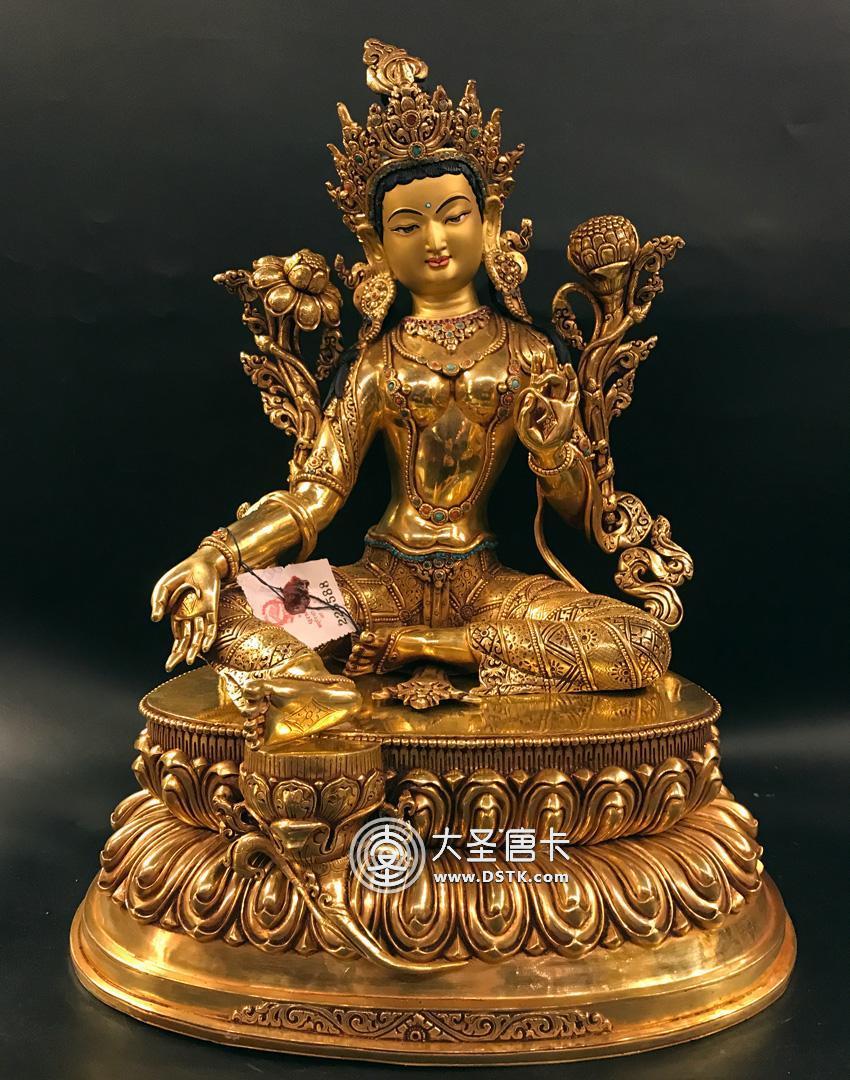 產地:尼泊爾佛像 工藝:鎏金 創作年份:2017 題材:佛母 繪制時間:0日 尺寸:40*25*26cm 重量:0 g 材質:紫銅 使用場地: