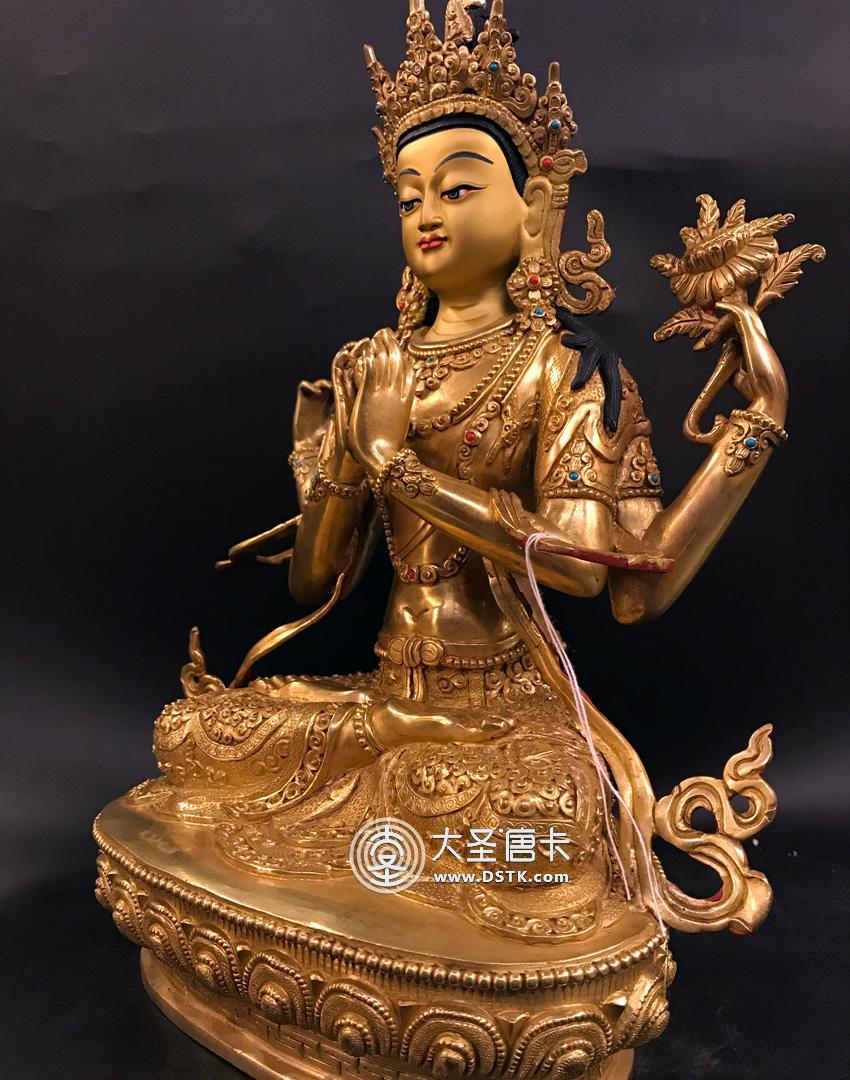 產地:尼泊爾佛像 工藝:鎏金 創作年份:2017 題材:菩薩 繪制時間:0日 尺寸:33*15*18cm 重量:0 g 材質:紫銅 使用場地: