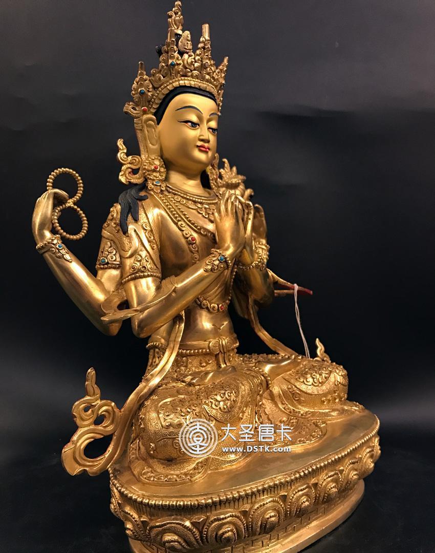 四臂觀音鎏金一尺
