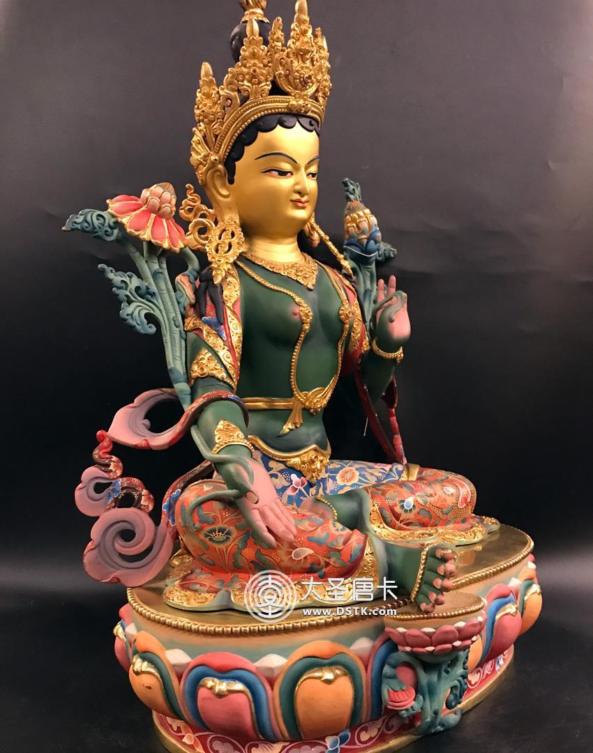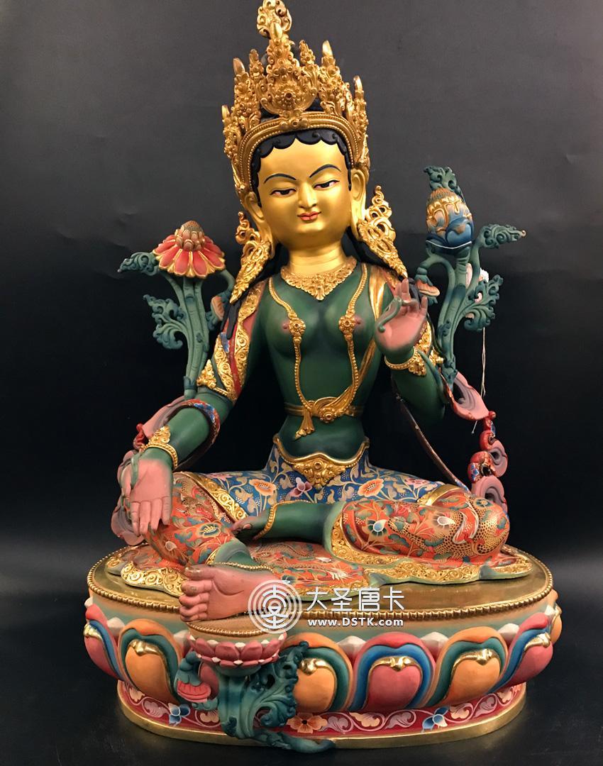 產地:尼泊爾佛像 工藝:鎏金 創作年份:2017 題材:佛母 繪制時間:0日 尺寸:50*25*30cm 重量:0 g 材質:紫銅 使用場地: