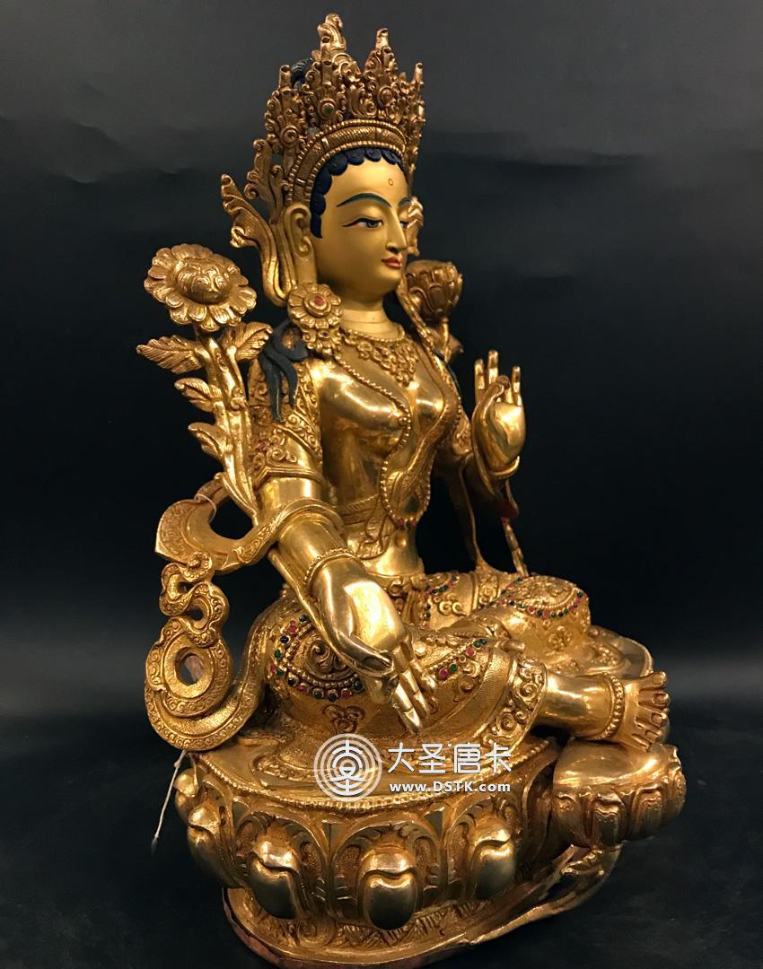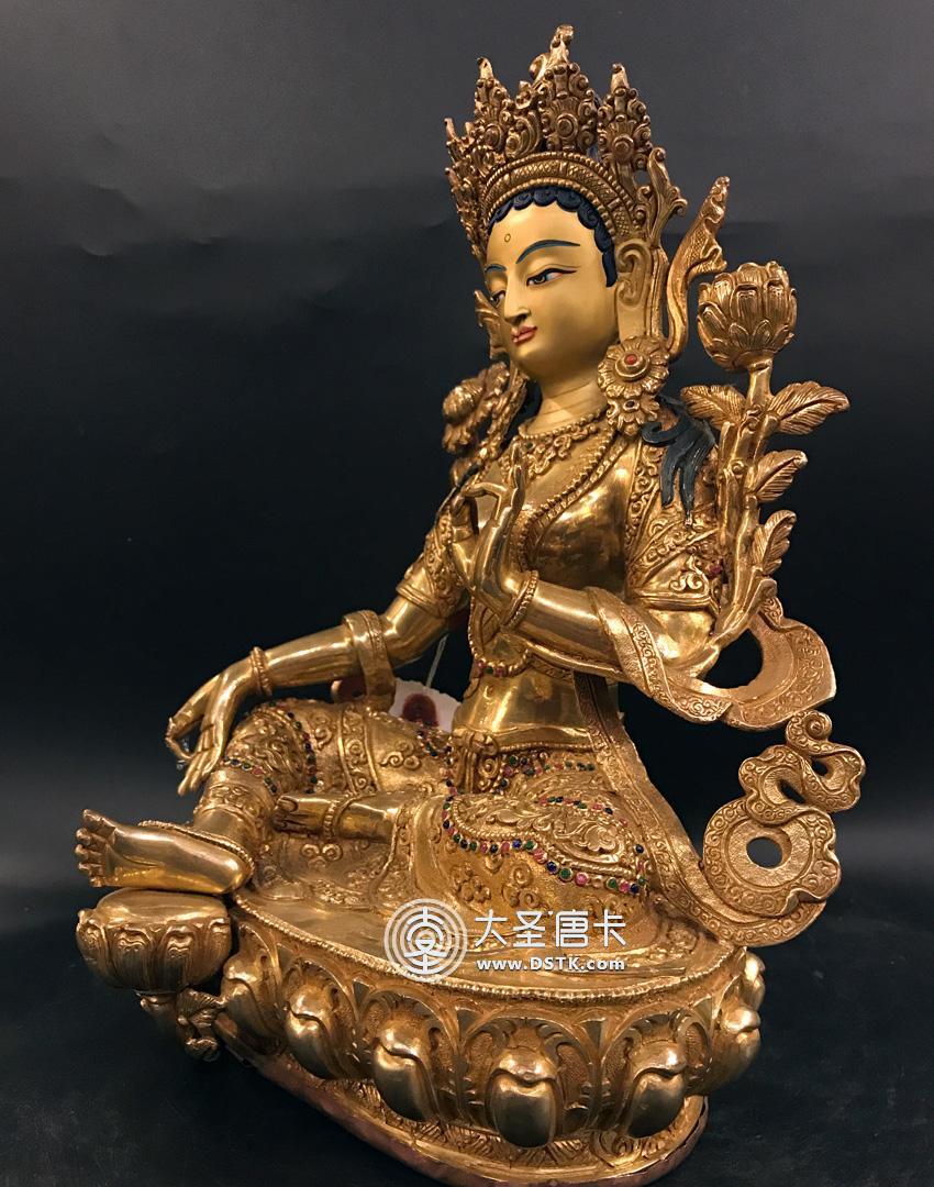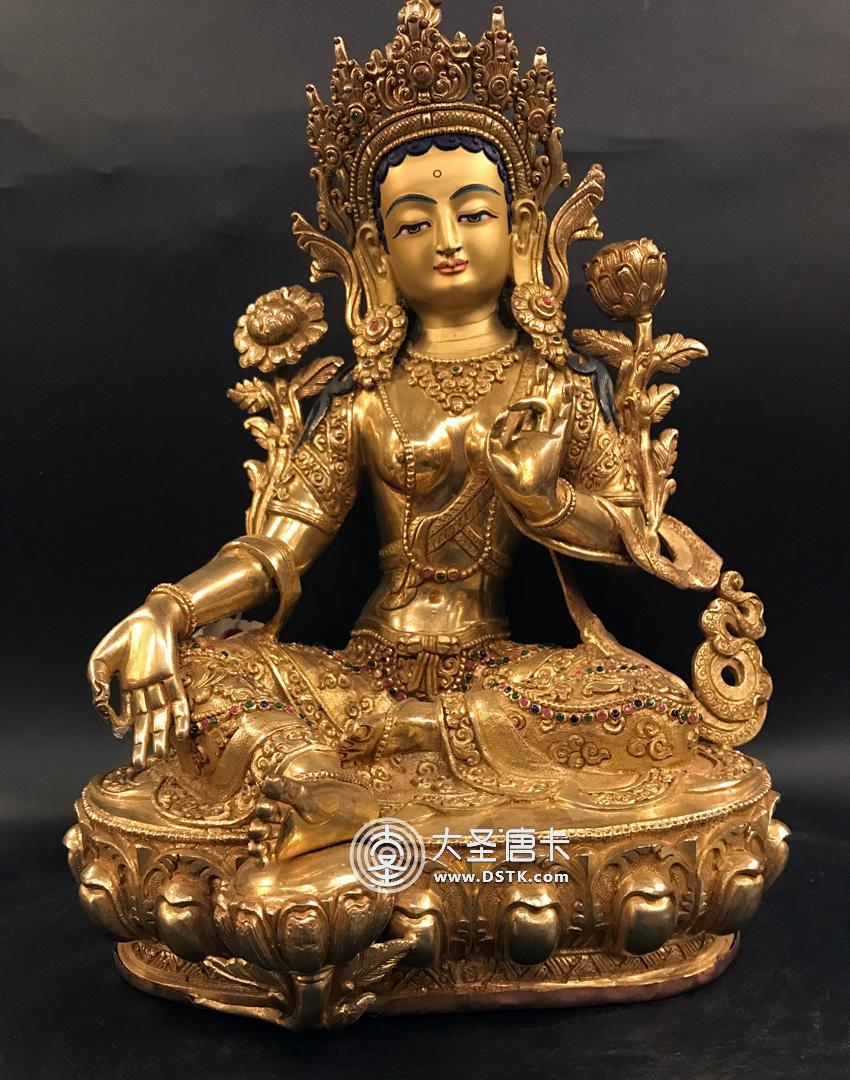 產地:尼泊爾佛像 工藝:鎏金 創作年份:2017 題材:佛母 繪制時間:0日 尺寸:33*18*25cm 重量:0 g 材質:紫銅 使用場地: