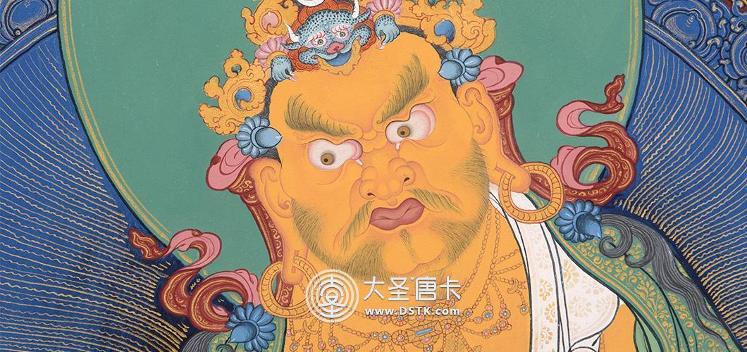 產地:熱貢 工藝:彩唐 創作年份:2017 題材:護法 繪制時間:6月 尺寸:*48*70cm 裝裱:無裱 材質: 使用場地:書房