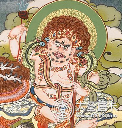 產(chǎn)地:熱貢 工藝:彩唐 創(chuàng)作年份:2017 題材:護(hù)法 繪制時(shí)間:8月 尺寸:*57*80cm 裝裱:無裱 材質(zhì): 使用場地:走廊