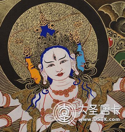 | 唐卡“師傅”開臉,筆路穩重流暢。體現完美天人相,可見佛菩薩慈眉善目,賦予唐卡畫像生的靈氣。 | 細節決定品質,點睛之筆不到位影響整體美觀,五官比例不協調,面目呆板,缺乏靈氣。 |