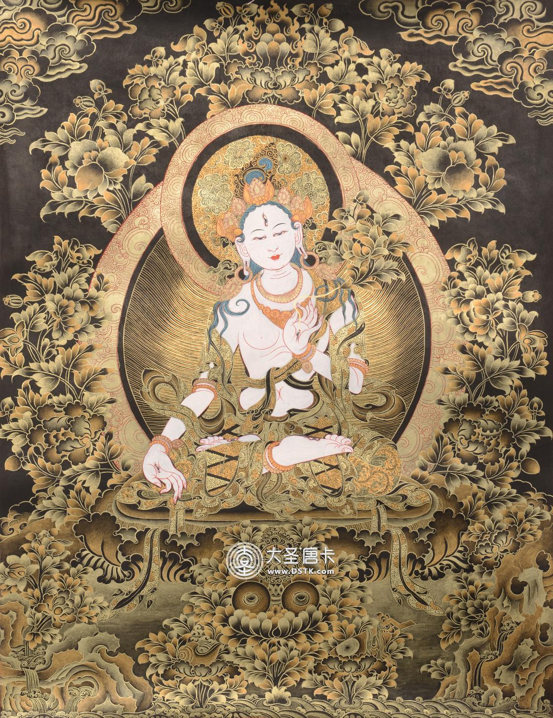 產地:熱貢 工藝:黑金 創作年份:2017 題材:佛母 繪制時間:9月 尺寸:*49*64cm 裝裱:無裱 材質: 使用場地:走廊