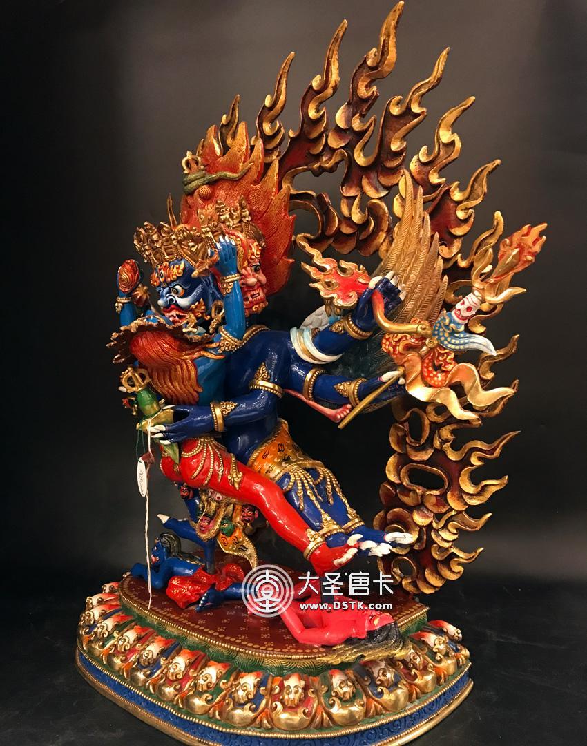 產地:尼泊爾佛像 工藝:彩繪 創作年份:2017 題材:金剛 繪制時間:0日 尺寸:50*25*36cm 重量:0 g 材質:紫銅 使用場地:走廊