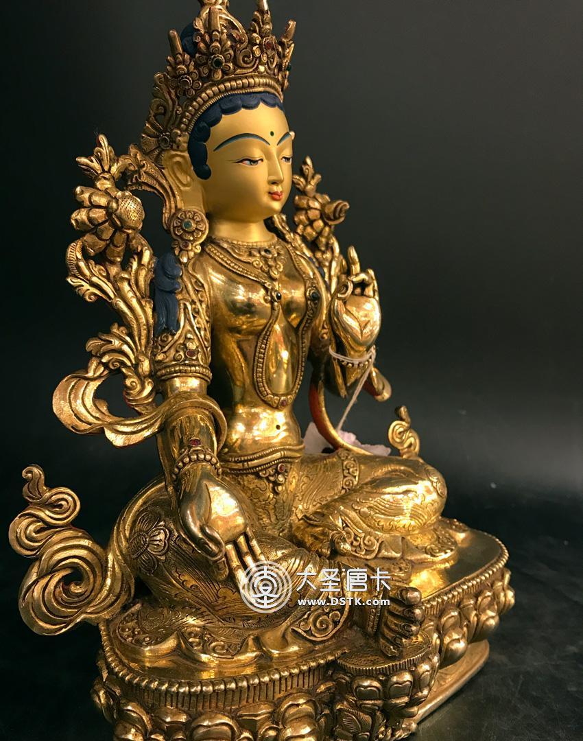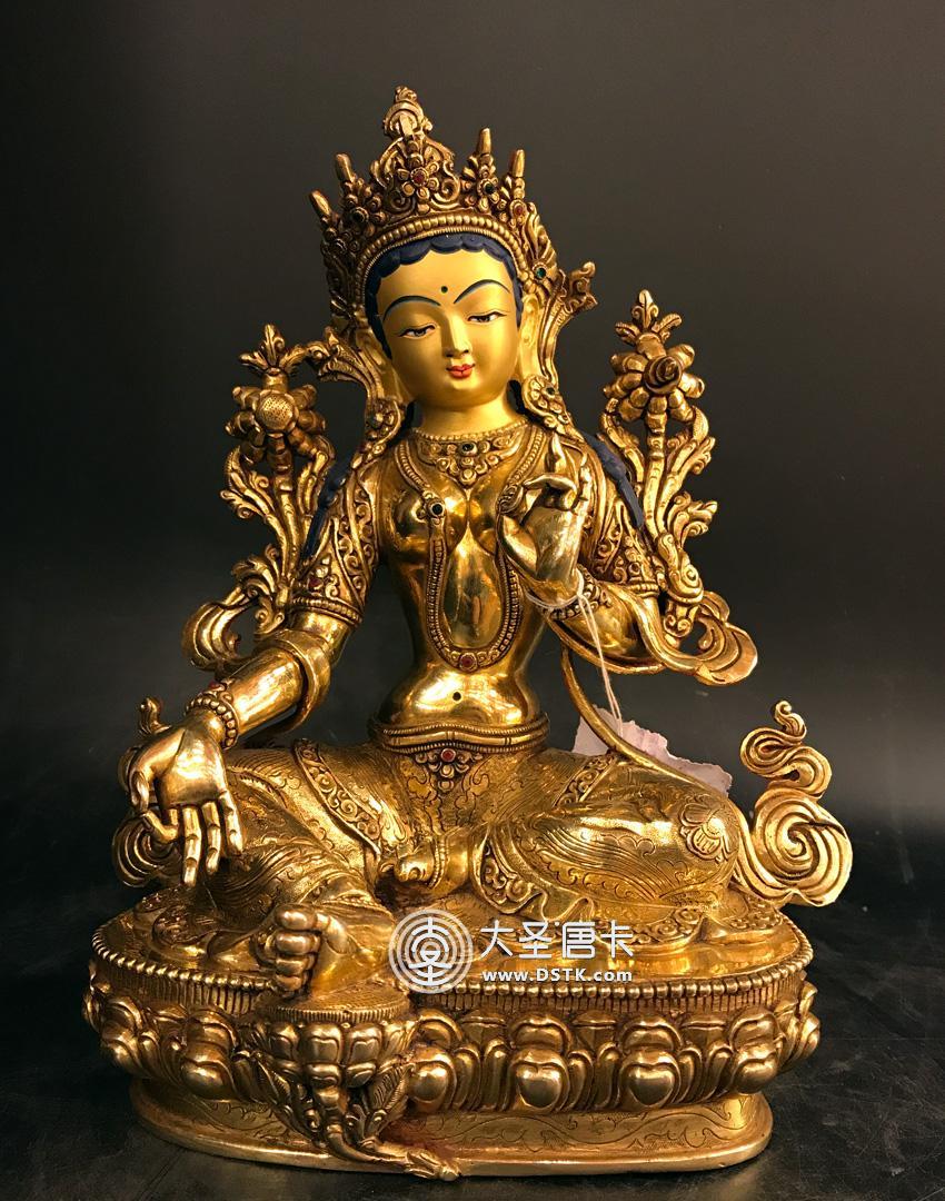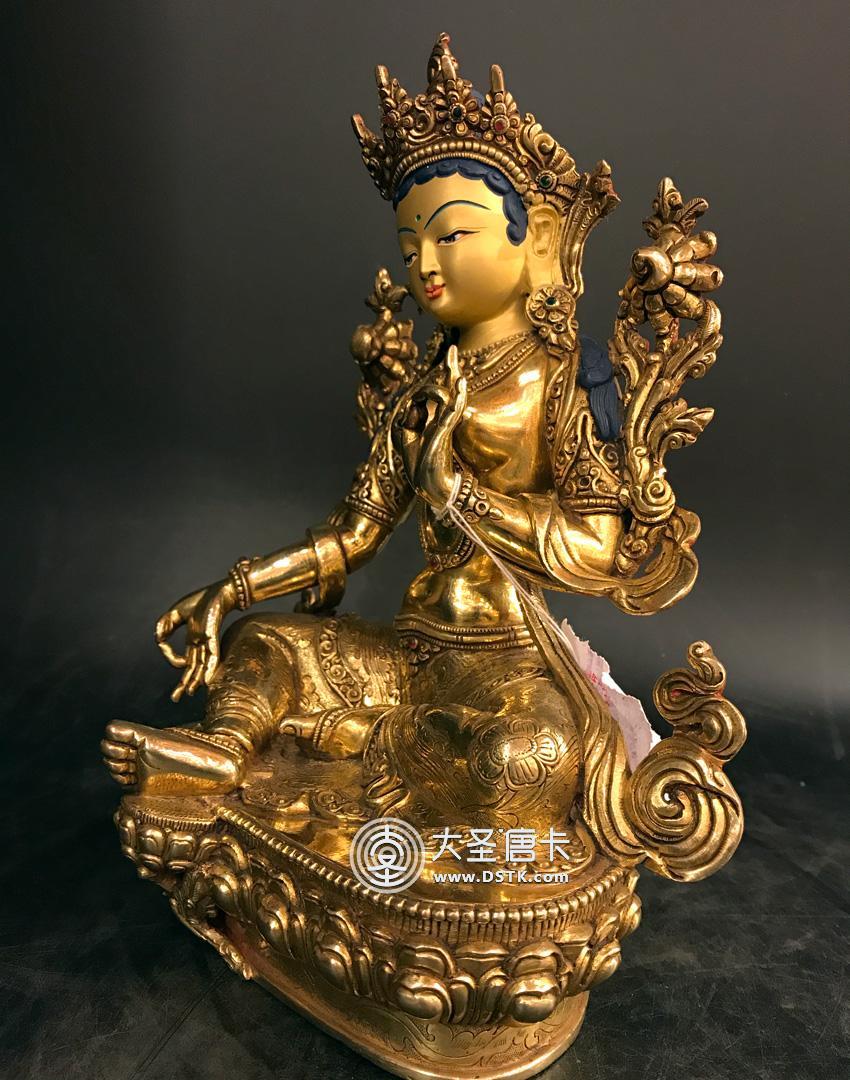 產地:尼泊爾佛像 工藝:鎏金 創作年份:2017 題材:佛母 繪制時間:0日 尺寸:23*12*15cm 重量:0 g 材質:紫銅 使用場地: