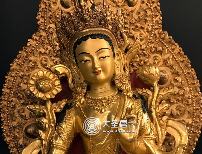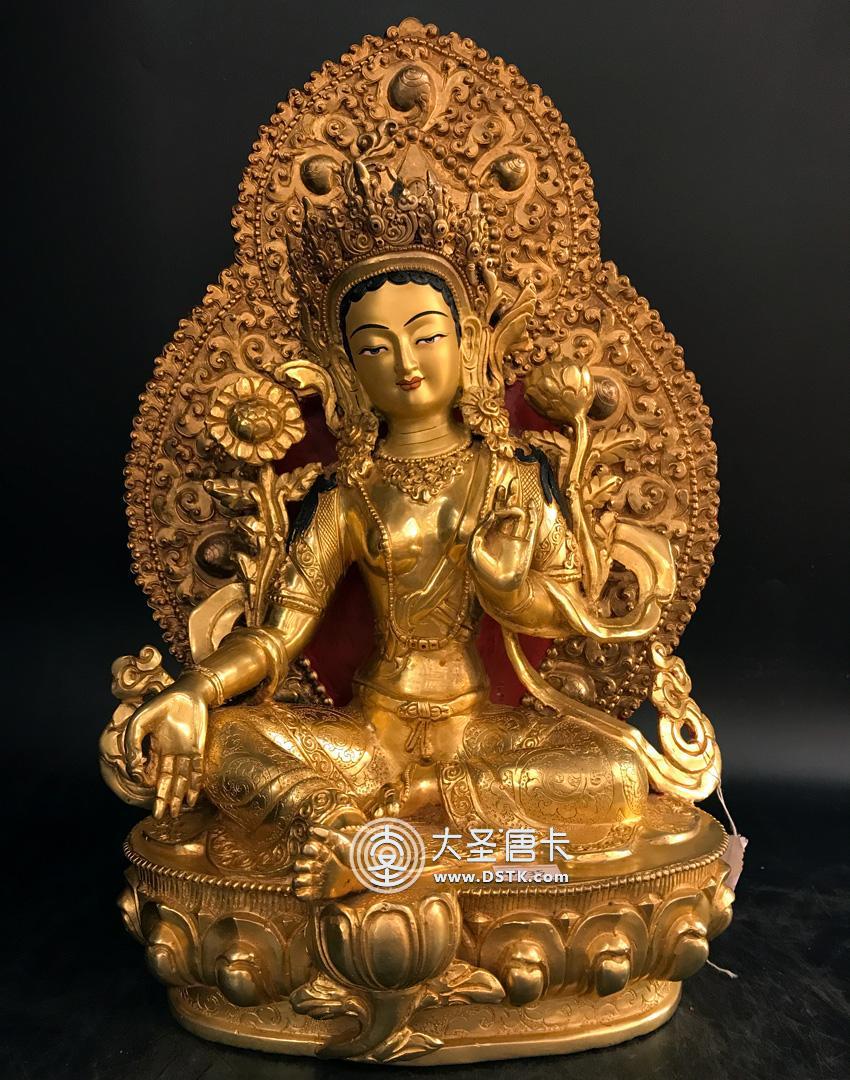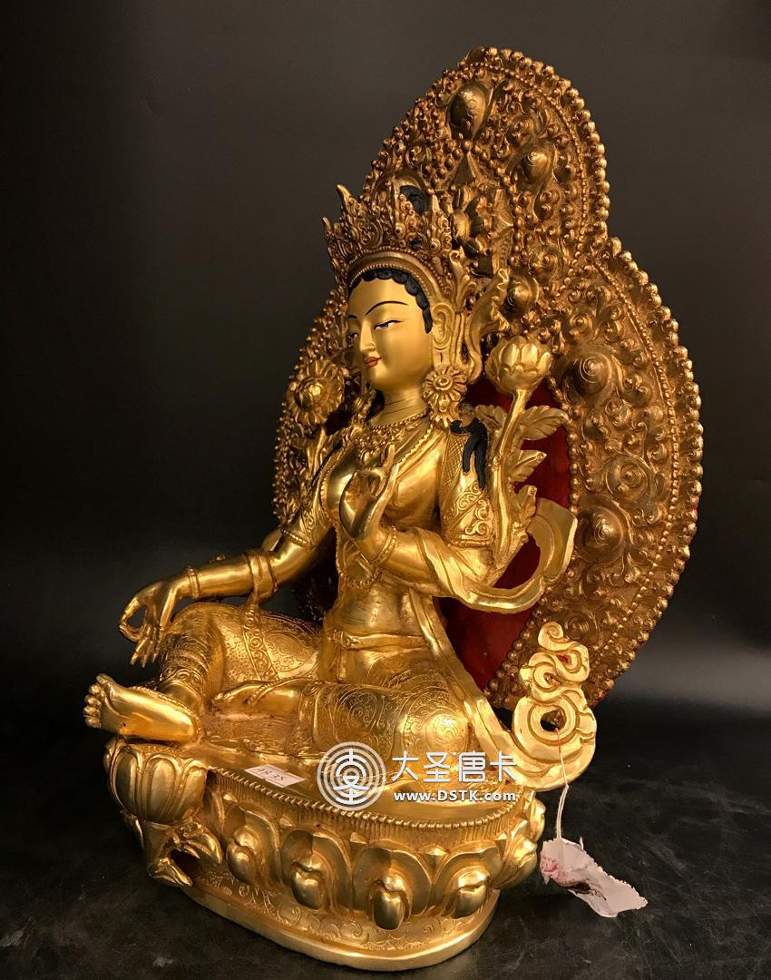 產地:尼泊爾佛像 工藝:鎏金 創作年份:2017 題材:佛母 繪制時間:0日 尺寸:42*28*30cm 重量:0 g 材質:紫銅 使用場地: