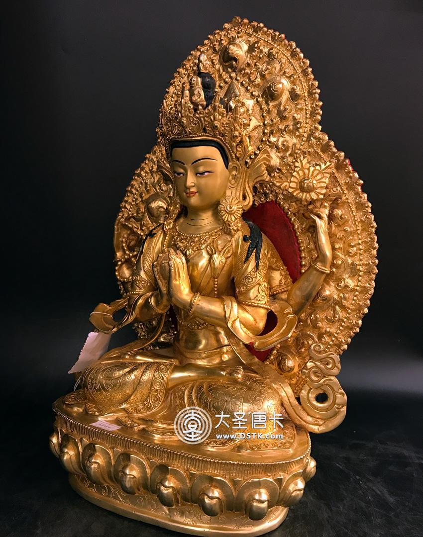產地:尼泊爾佛像 工藝:鎏金 創作年份:2017 題材:菩薩 繪制時間:0日 尺寸:42*25*28cm 重量:0 g 材質:紫銅 使用場地: