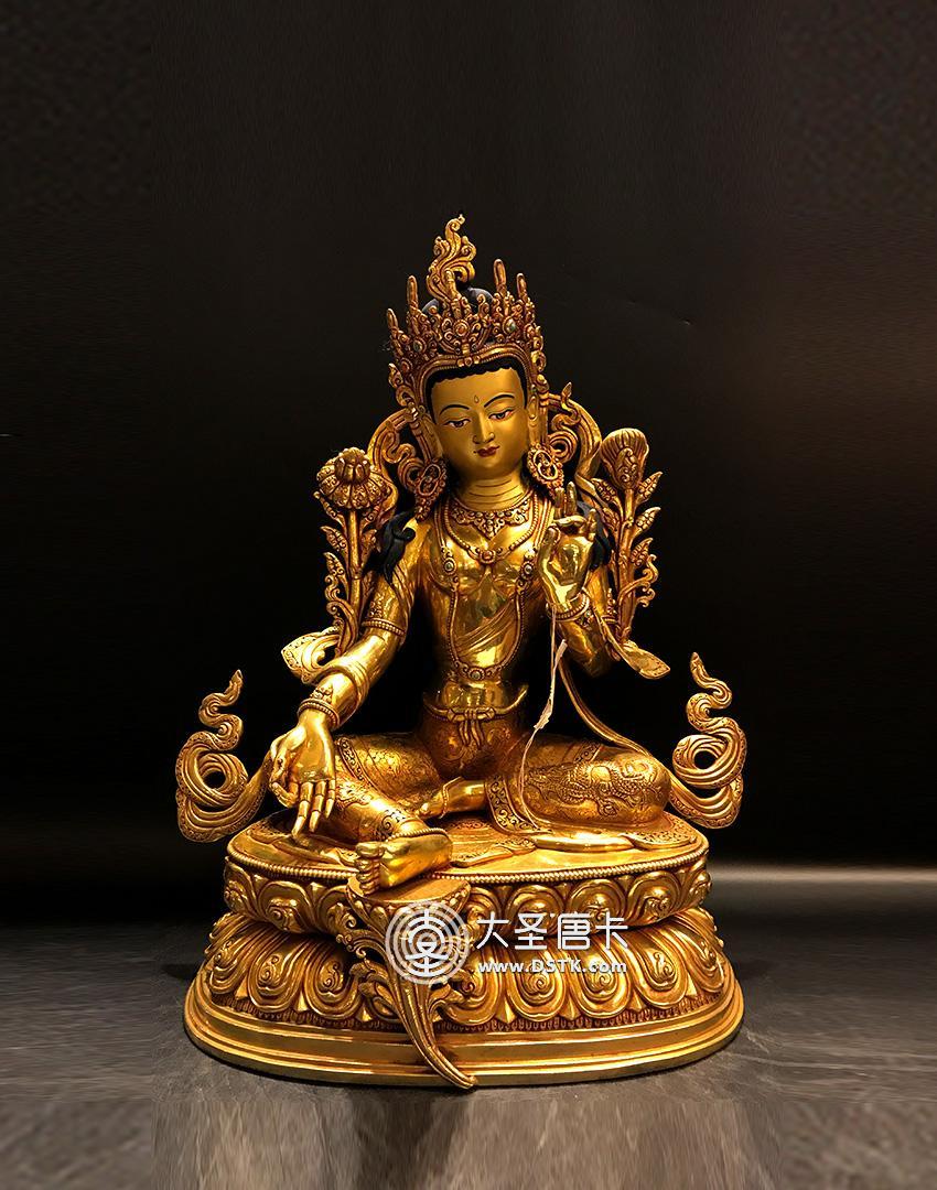 產地:尼泊爾佛像 工藝:鎏金 創作年份:2017 題材:佛母 繪制時間:0日 尺寸:45*25*35cm 重量:0 g 材質:紫銅 使用場地: