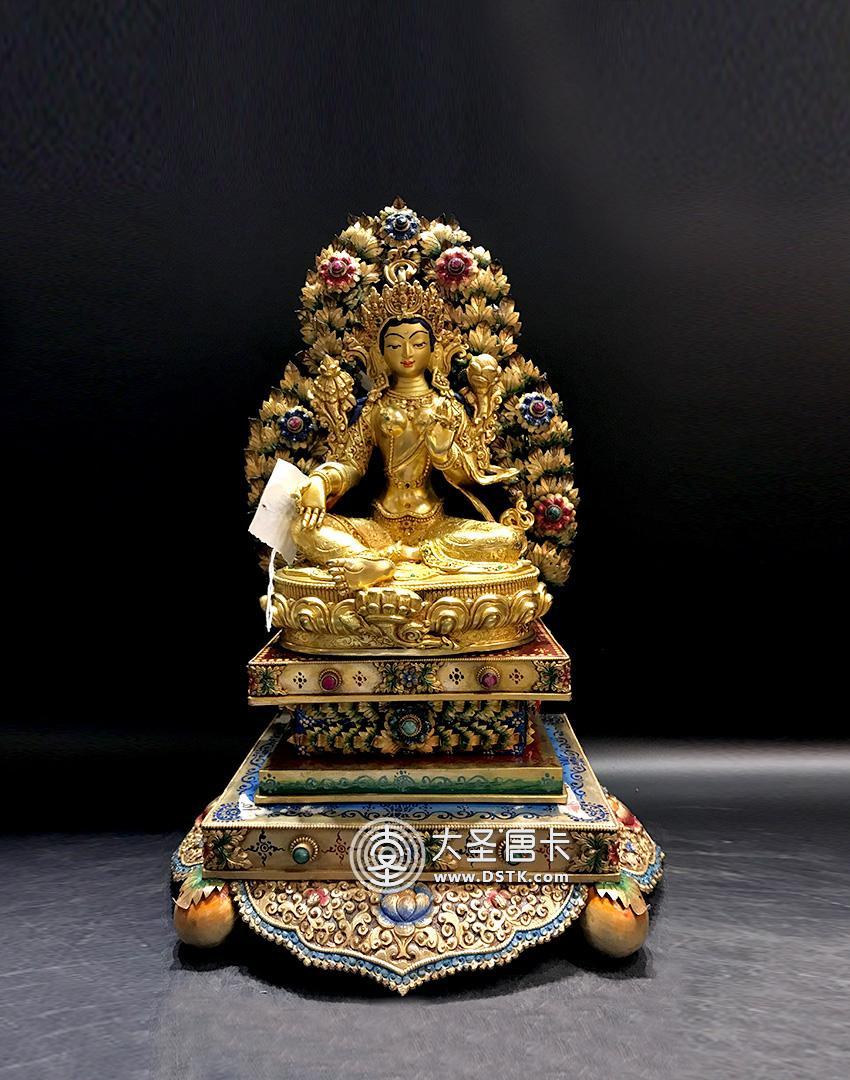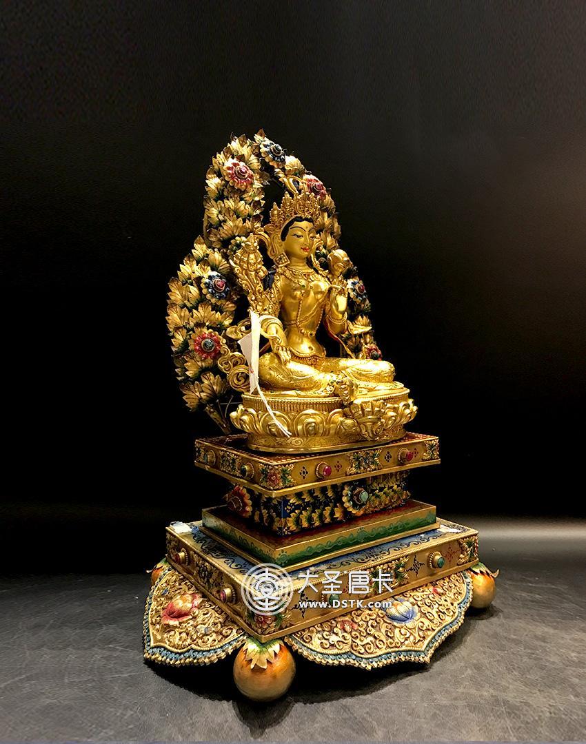 產地:尼泊爾佛像 工藝:鎏金 創作年份:2017 題材:佛母 繪制時間:0日 尺寸:40*25*25cm 重量:0 g 材質:紫銅 使用場地: