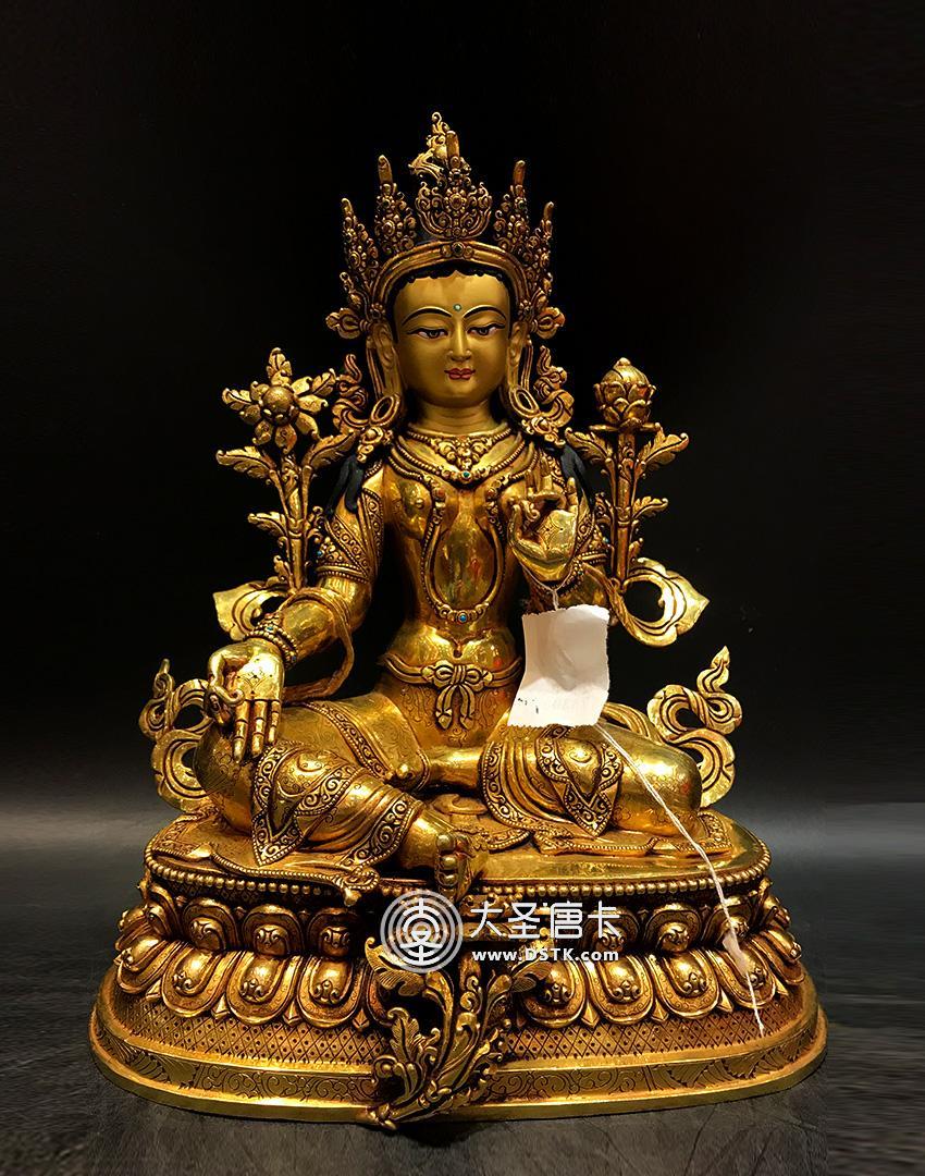 產地:尼泊爾佛像 工藝:鎏金 創作年份:2017 題材:佛母 繪制時間:0日 尺寸:33*12*15cm 重量:0 g 材質:紫銅 使用場地: