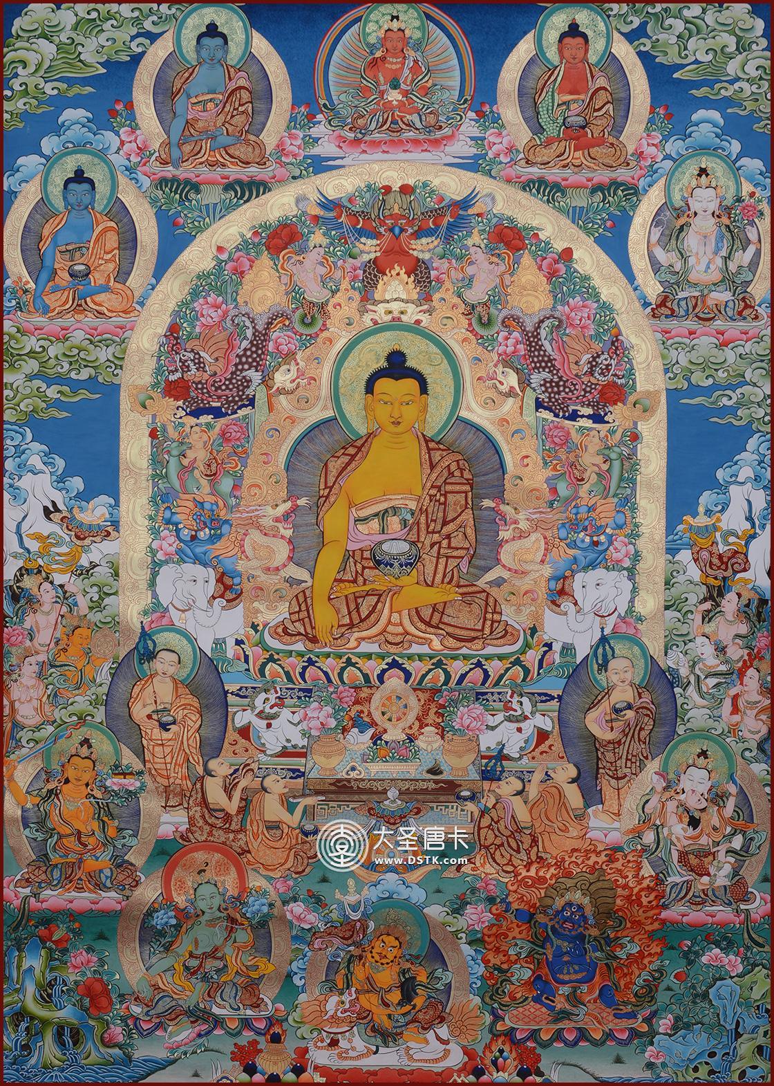 產地:熱貢 工藝:彩唐 創作年份:2017 題材:佛祖 繪制時間:15月 尺寸:*80*108cm 裝裱:無裱 材質: 使用場地:走廊