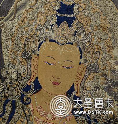 | 唐卡“師傅”開臉,筆路穩重流暢。體現完美天人相,可見佛菩薩慈眉善目,賦予唐卡畫像生的靈氣。 | 細節決定品質,點睛之筆不到位影響整體美觀,五官比例不協調,面目呆板,缺乏靈氣。 |
