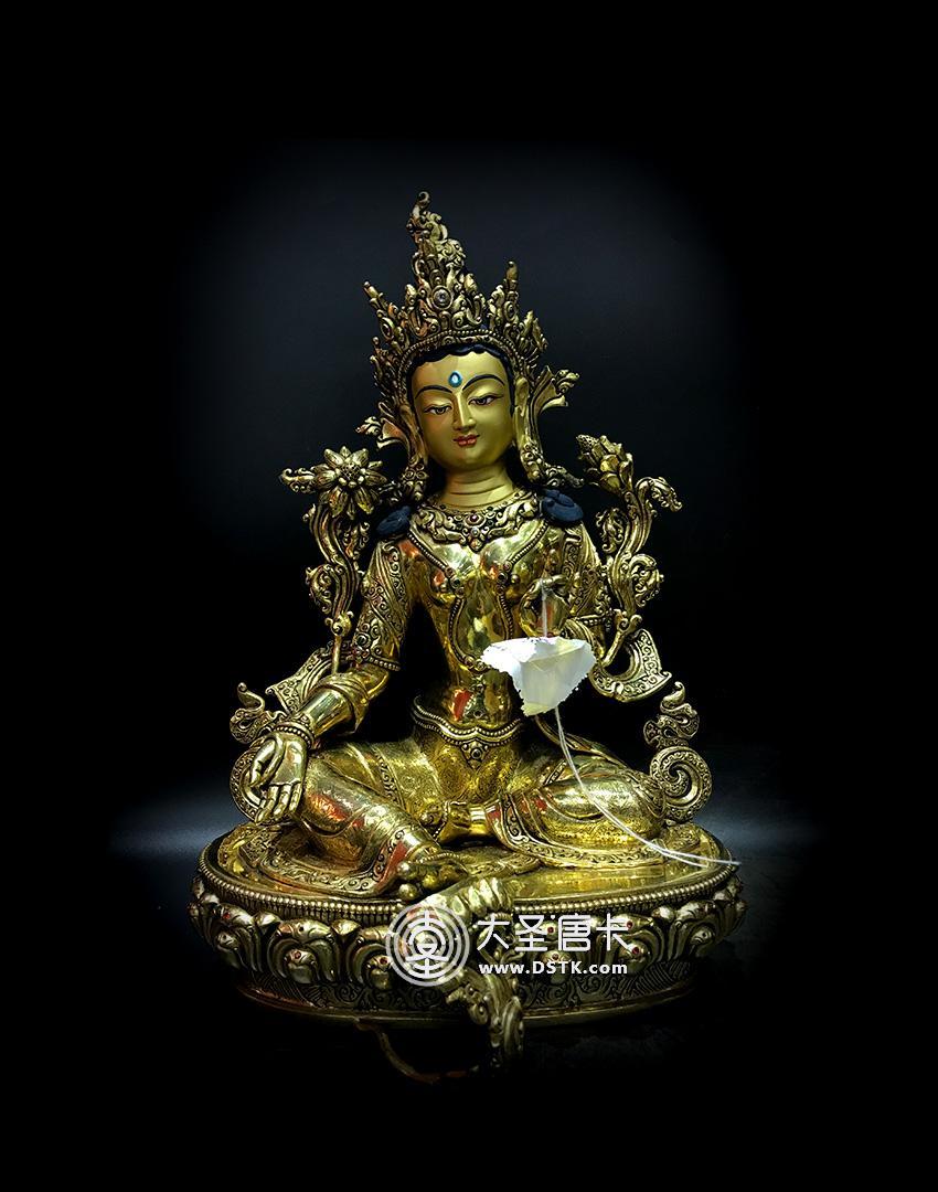 產地:尼泊爾佛像 工藝:鎏金 創作年份:2017 題材:佛母 繪制時間:0日 尺寸:33*15*18cm 重量:0 g 材質:紫銅 使用場地:
