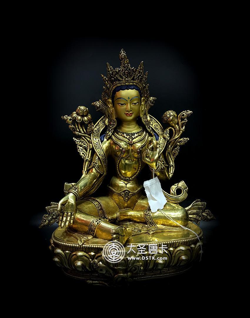 產地:尼泊爾佛像 工藝:鎏金 創作年份:2017 題材:佛母 繪制時間:0日 尺寸:33*15*18cm 重量:0 g 材質:紫銅 使用場地: