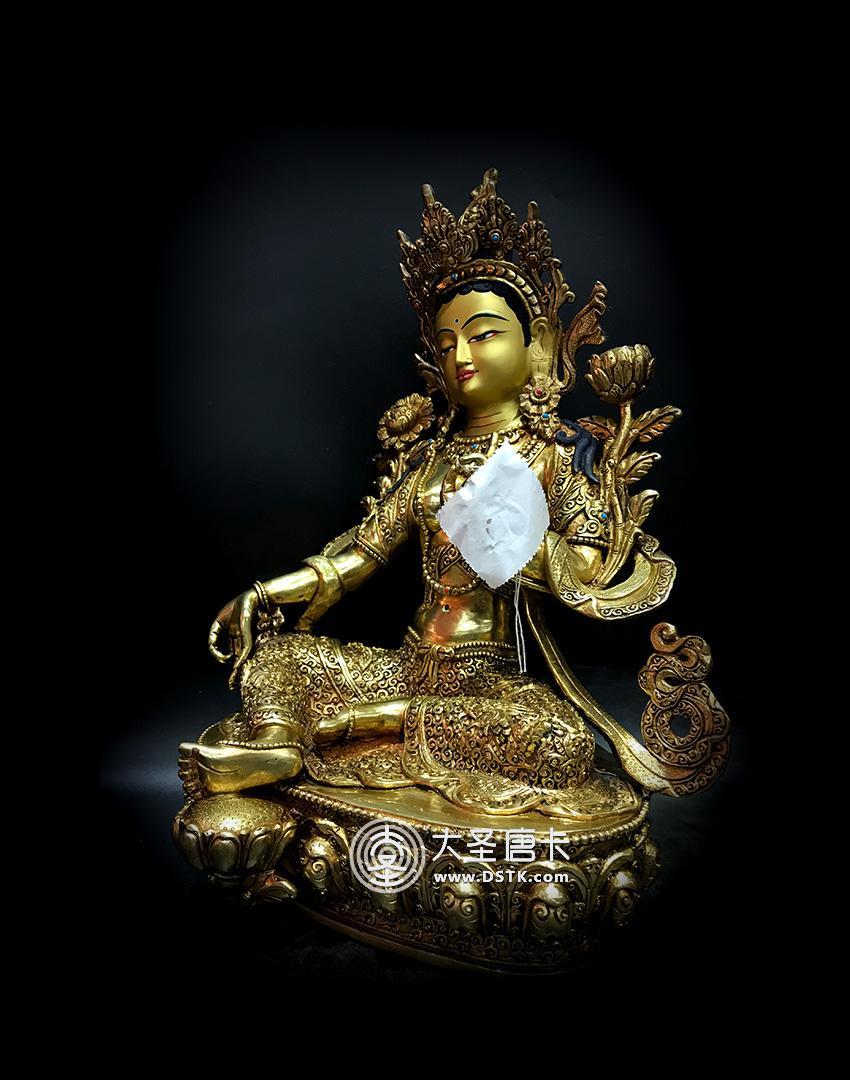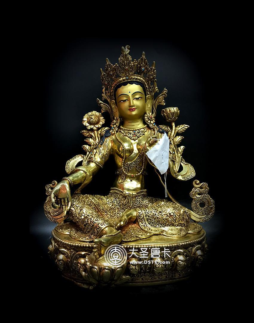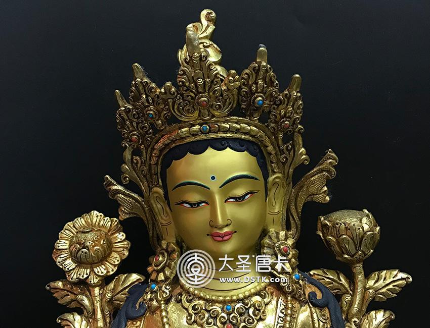 產地:尼泊爾佛像 工藝:鎏金 創作年份:2017 題材:佛母 繪制時間:0日 尺寸:33*15*18cm 重量:0 g 材質:紫銅 使用場地: