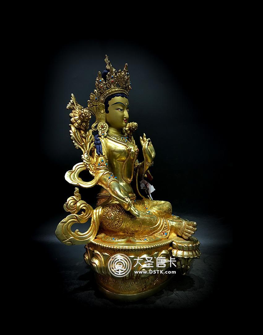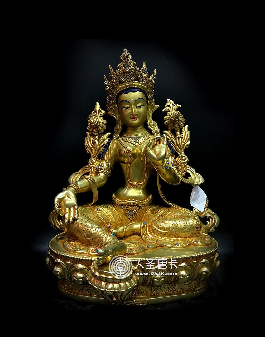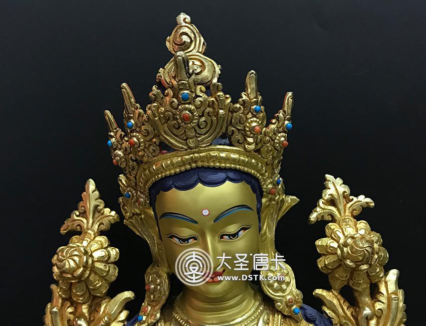 產地:尼泊爾佛像 工藝:鎏金 創作年份:2017 題材:佛母 繪制時間:0日 尺寸:33*15*18cm 重量:0 g 材質:紫銅 使用場地: