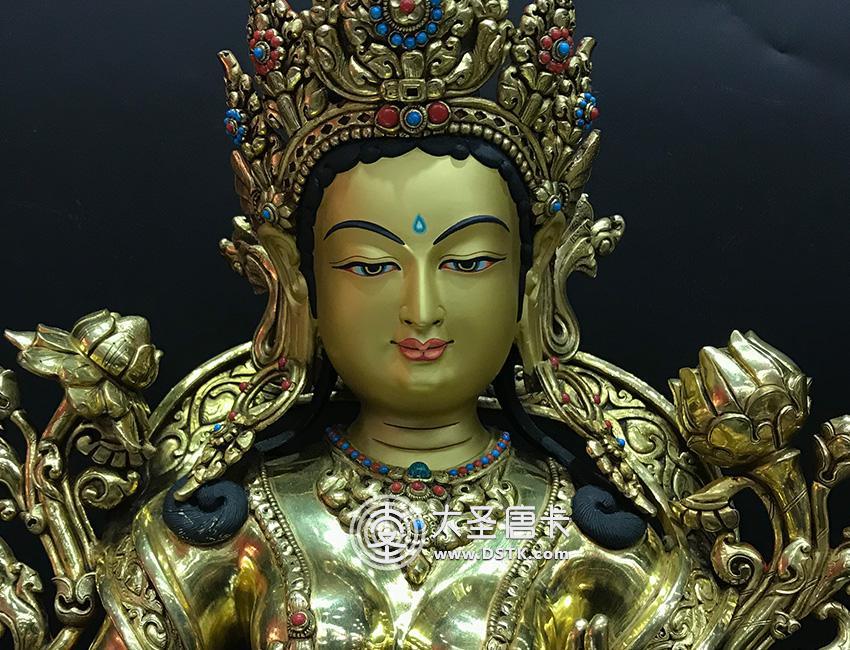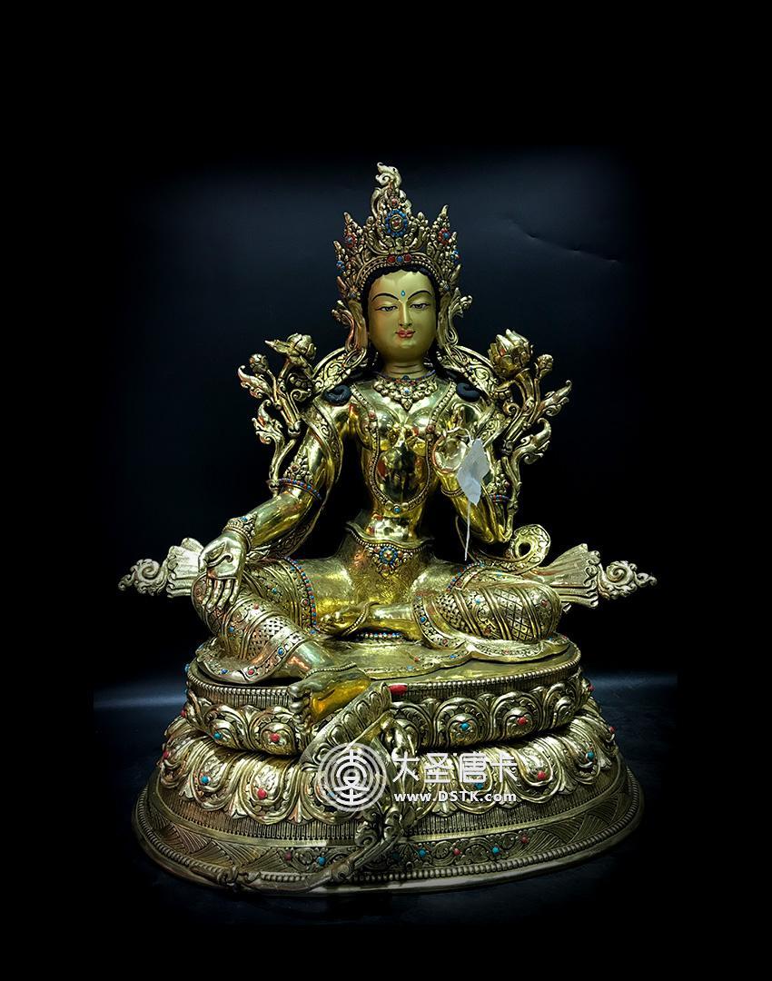 產地:尼泊爾佛像 工藝:鎏金 創作年份:2017 題材:佛母 繪制時間:0日 尺寸:54*25*28cm 重量:0 g 材質:紫銅 使用場地: