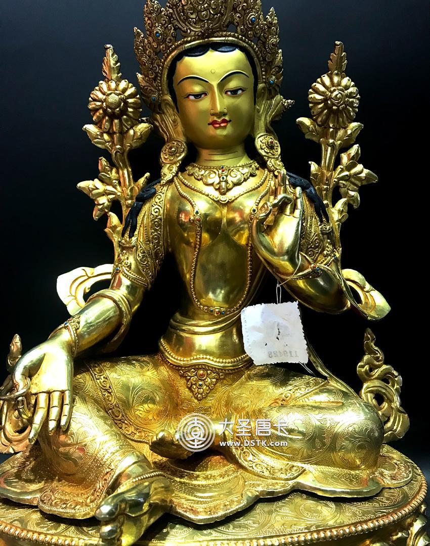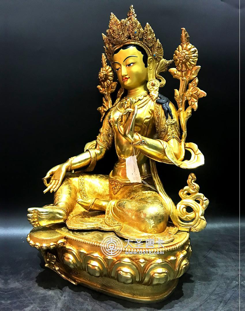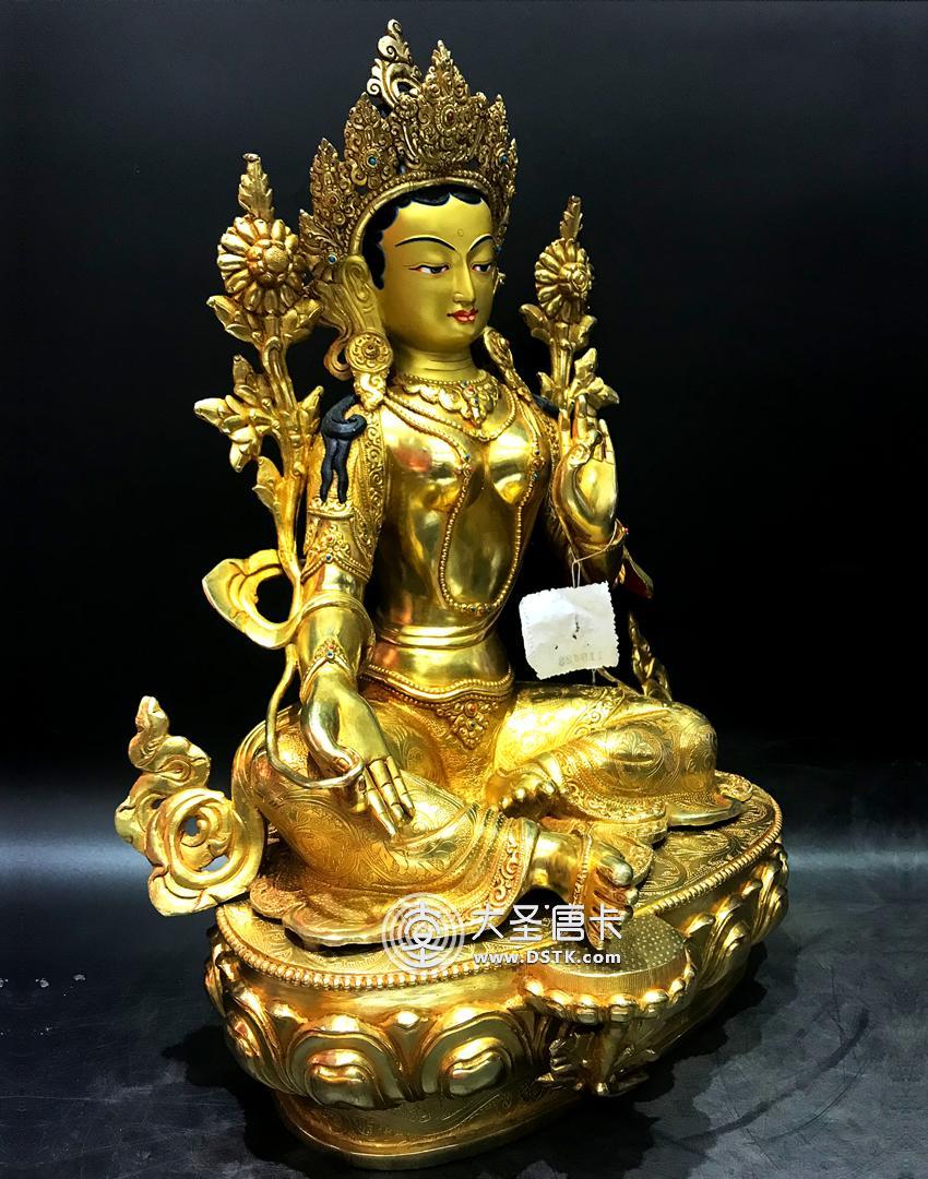 產地:尼泊爾佛像 工藝:鎏金 創作年份:2017 題材:佛母 繪制時間:0日 尺寸:46*25*28cm 重量:0 g 材質:紫銅 使用場地: