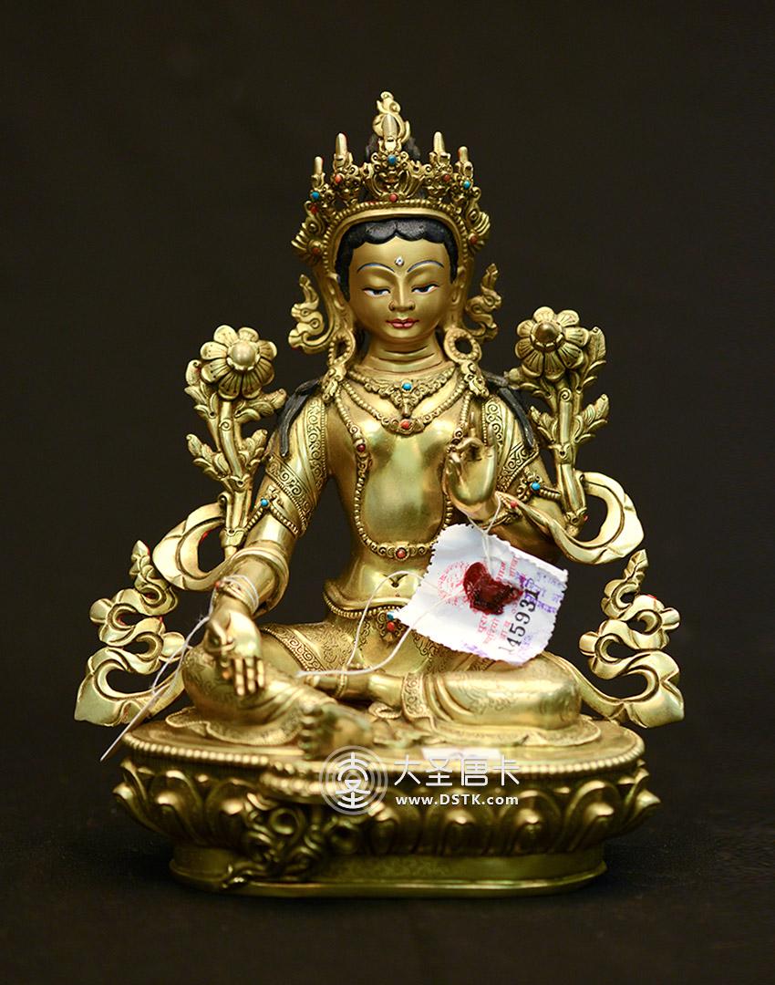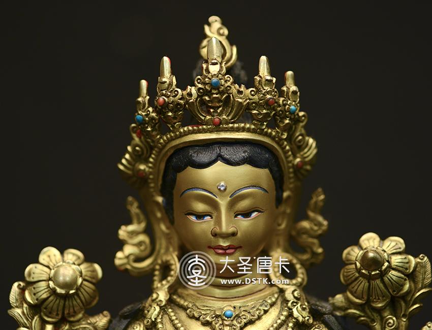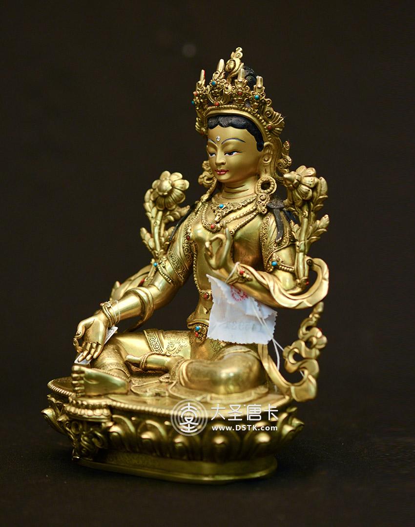產地:尼泊爾佛像 工藝:鎏金 創作年份:2017 題材:綠度母 繪制時間:0日 尺寸:23cm 重量:0 g 材質:紫銅 使用場地: