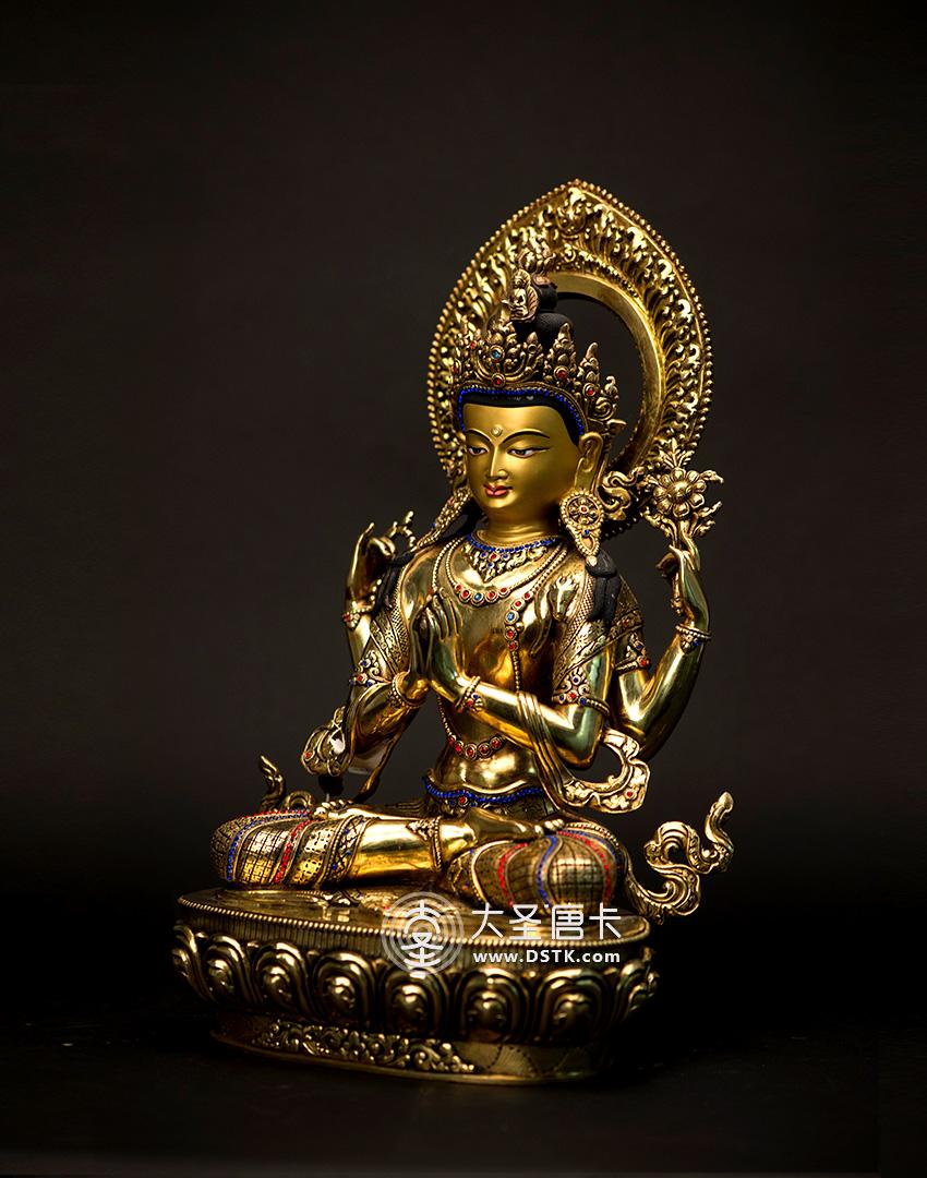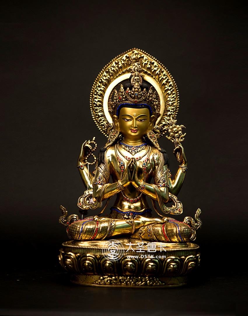 大圣唐卡商城 >> 作品詳情 >> 四臂觀音鎏金40cm